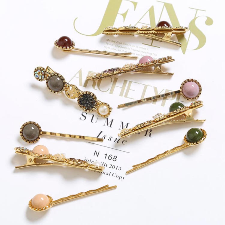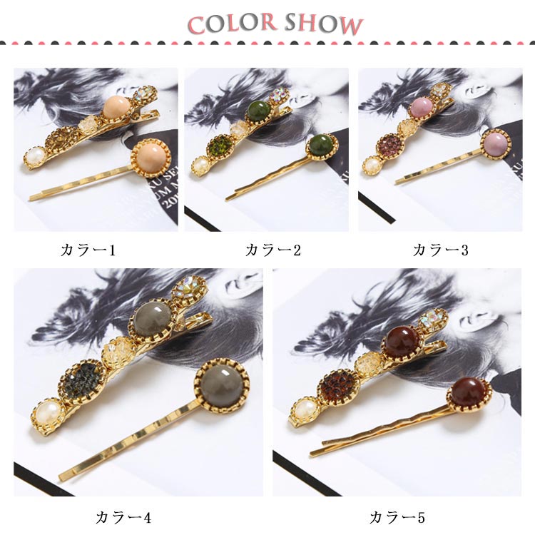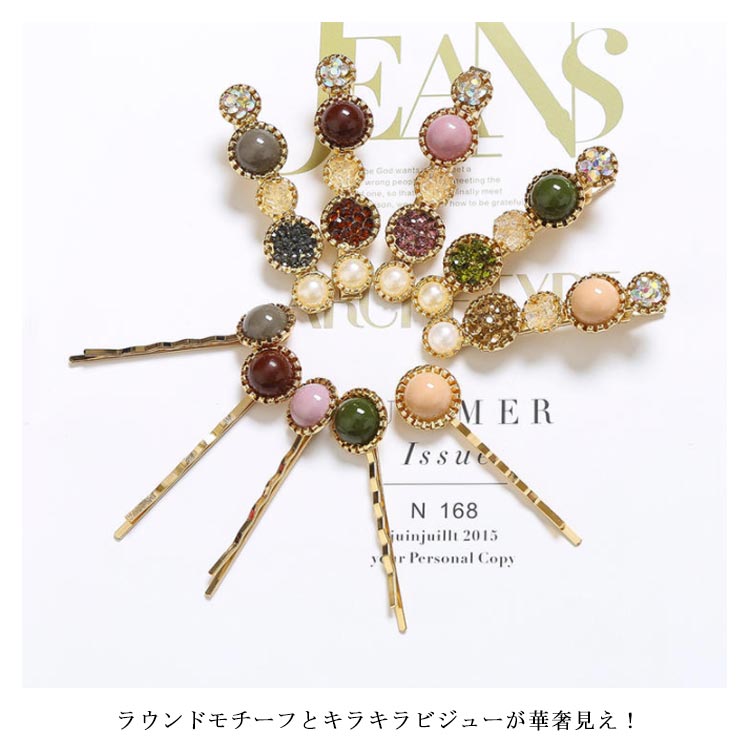 | 大人のための可愛いヘアクリップ。 ラウンドモチーフとキラキラビジューが華奢見え! 結婚式や入卒園式などのヘアアレンジにプラスして、アクセントに デイリーにも活躍してくれる子供っぽくならないヘアピンです。 | |