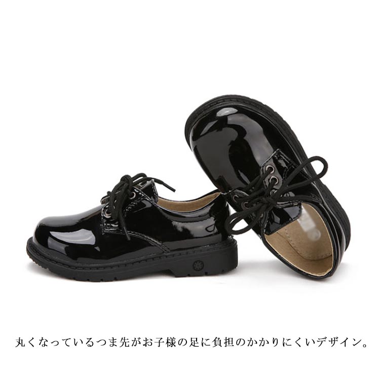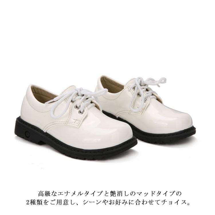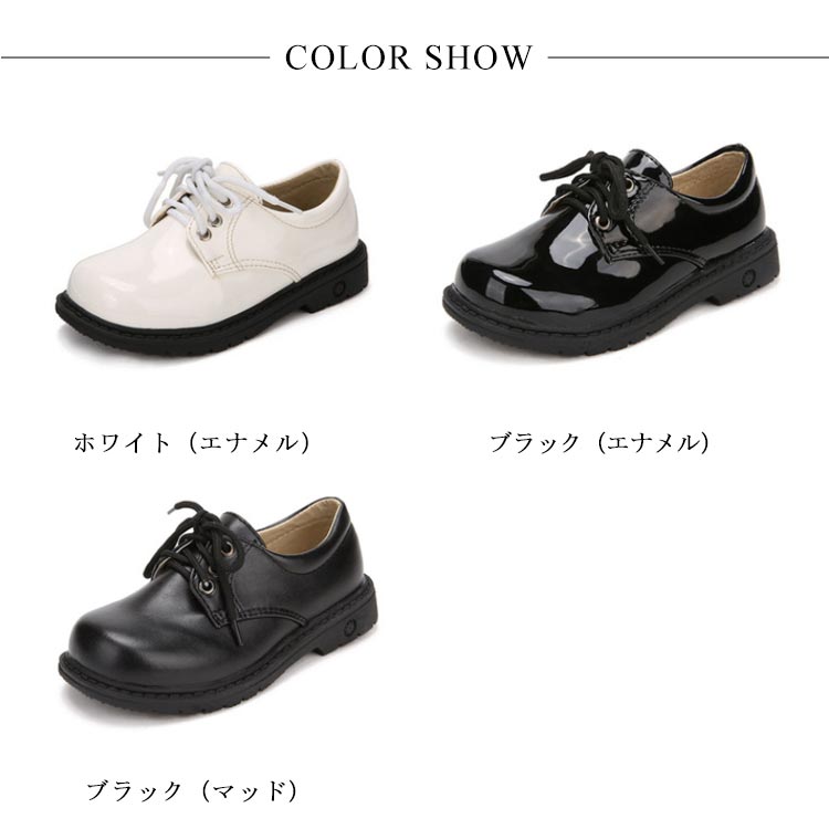 | 1足あるとあらゆる場面で大活躍! レースアップ仕様でしっかりフィットし、足が疲れにくく、シンプルで上品な子供靴 結婚式・発表会・入園式・卒園式・入学式・お葬式など幅広いフォーマルシーンで活躍しくてれる。 もちろん、通園・通学と普段使いのシューズとしてもお使い頂けます。 丸くなっているつま先がお子様の足に負担のかかりにくいデザイン。 本革よりもお手入れが楽チンの柔らかで上品な合成皮革なので、とても履きやすくなっております。 高級なエナメルタイプと艶消しのマッドタイプの2種類をご用意し、シーンやお好みに合わせてチョイス。 | |