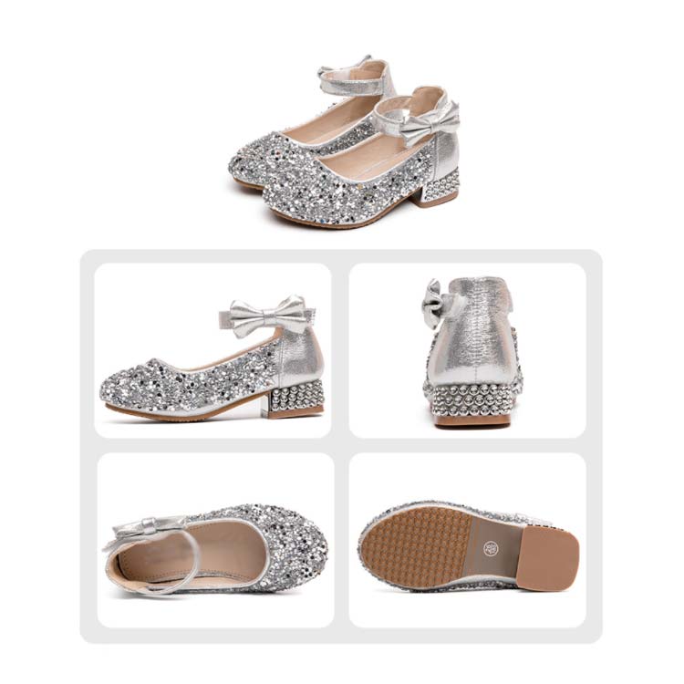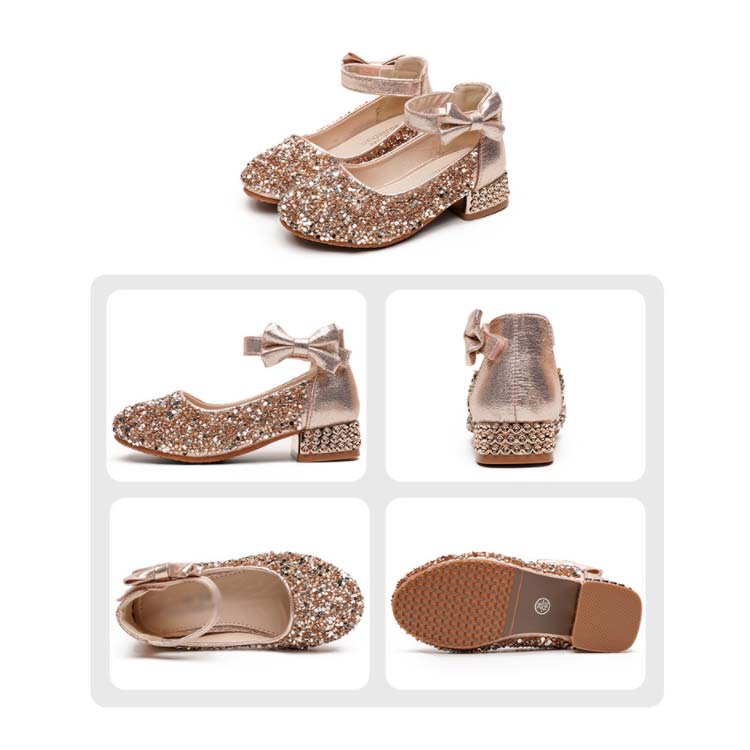 | 履きやすく、高級感溢れるプリンセスシューズ。 キラキラ輝くスパンコールとビジューが華やかさをプラス。 スムーズに曲がるソールは足への負担を軽減し、お子様の足に優しい。 キレイめからフォーマルまで、どんなコーデにもマッチする飽きのこないデザインが魅力的◎ 結婚式・発表会・演奏会から普段のお洒落まで、シーンを選ばず幅広く活躍します。 | |