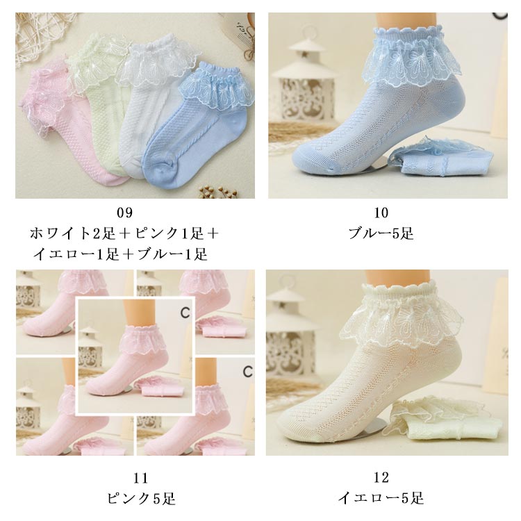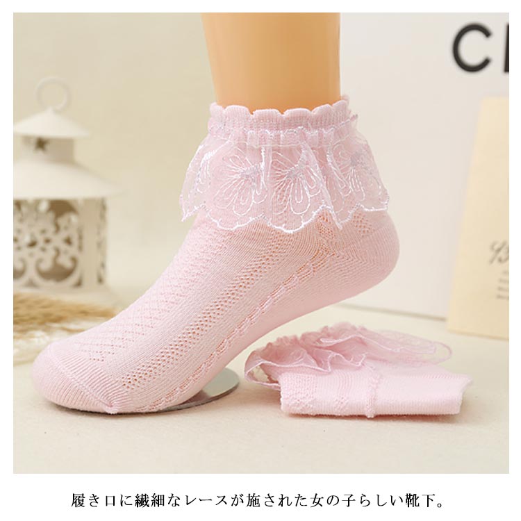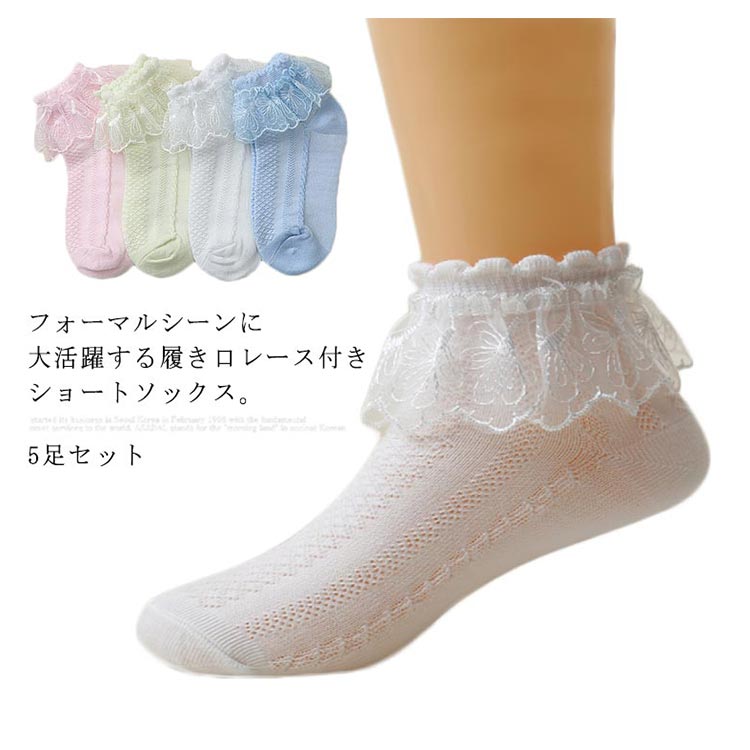 5足セット レース付き ソックス 送料無料 キッズ ジュニア 靴下 ショートソックス ベビー ソックス メッシュ編み 春 夏 無地 フォーマル 発表会 結婚式 ダンス