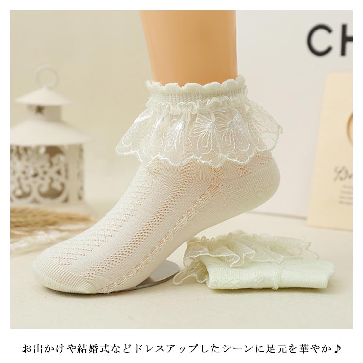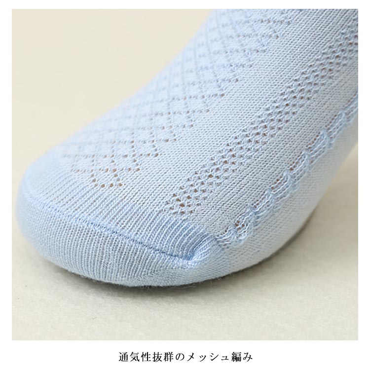 | フォーマルシーンに大活躍する履き口レース付きショートソックス。 履き口に繊細なレースが施された女の子らしい靴下。 お出かけや結婚式などドレスアップしたシーンに足元を華やか 通気性・吸湿性に優れた綿混素材にメッシュ編みで春夏大活躍する間違いなし。 フォーマルシーンはもちろん、カジュアルなスニーカーに合わせてもとてもキュートでお洒落。 | |