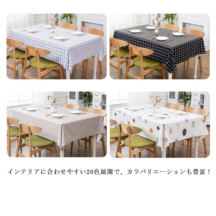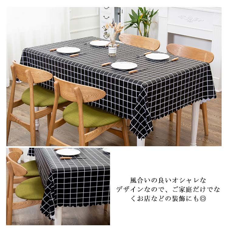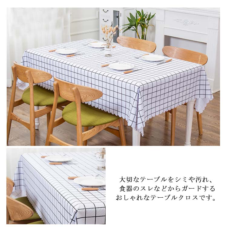 テーブルクロス 撥水 送料無料 チェック柄 長方形 オシャレ 140*220cm ダイニングテーブル 傷防止 大判 カフェ 布 レストラン スカラップ 花柄