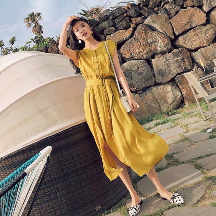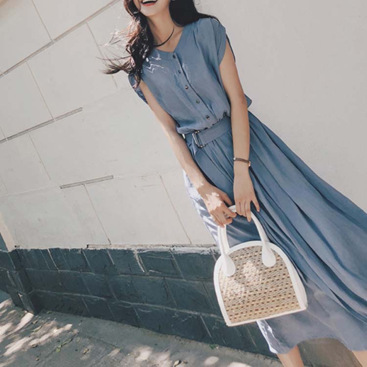 全4色×4サイズ!ロングシャツワンピース ウエストベルト付き 夏ワンピース ワンピース 夏 シャツワンピース 半袖 ロング丈 膝下丈 シンプル 無地 ナチュラル 可愛い 春夏