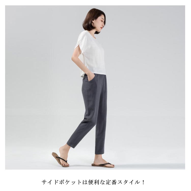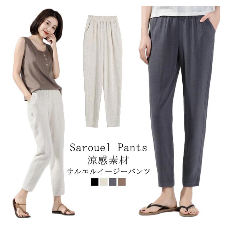 涼感素材 サルエルパンツ レディース 9分丈 パンツ サルエルパンツ テーパードパンツ ロングパンツ リラックスパンツ イージーパンツ クロップドパンツ ルームウェア ナチュラル