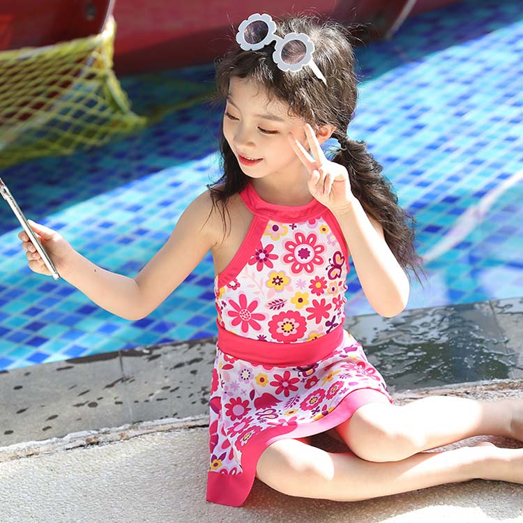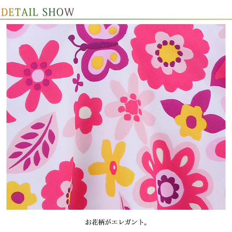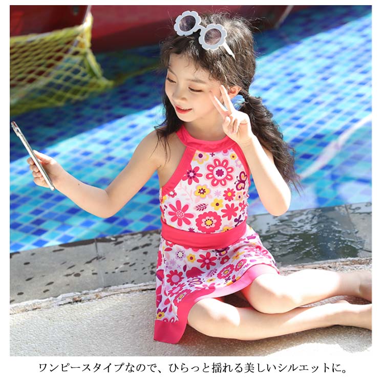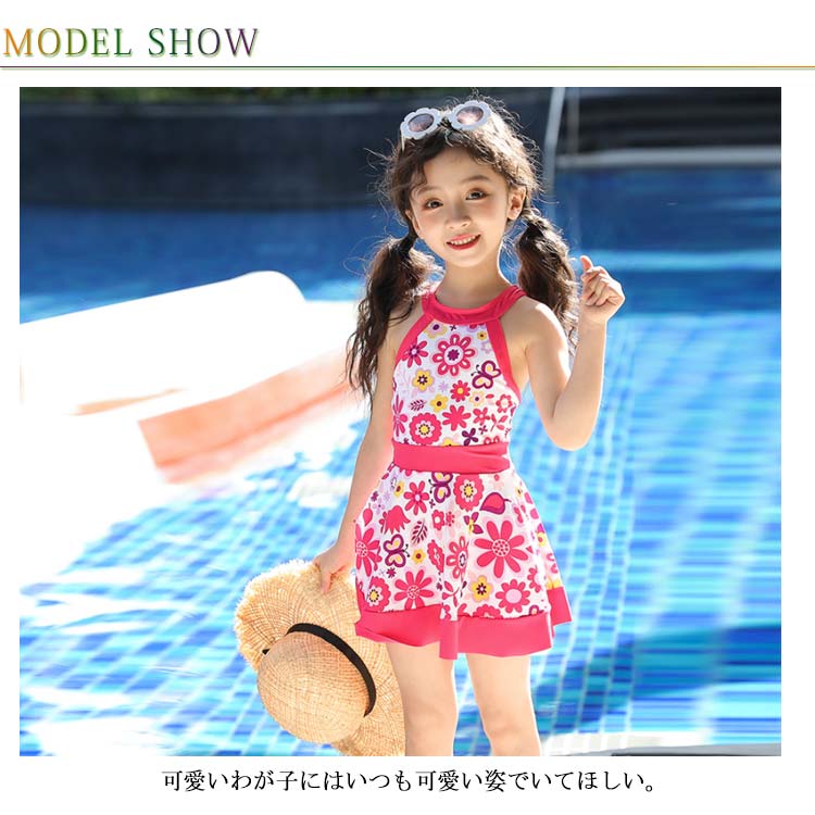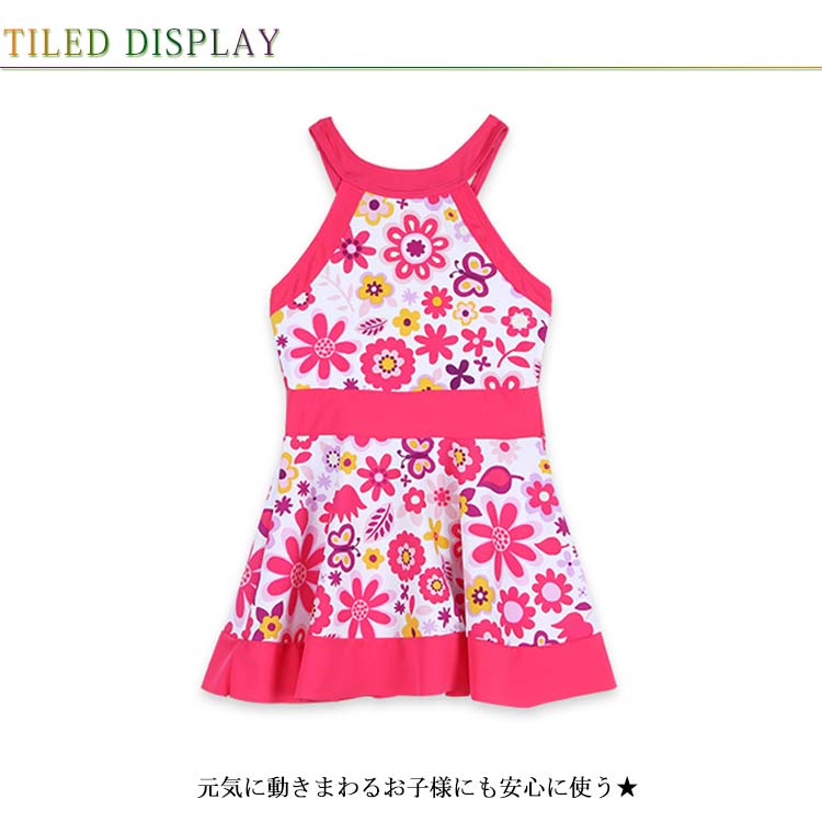 | 明るく爽やかな雰囲気を演出するキッズ用水着 可愛いわが子にはいつも可愛い姿でいてほしい。 お花柄がエレガント。 ワンピースタイプなので、ひらっと揺れる美しいシルエットに。 | |