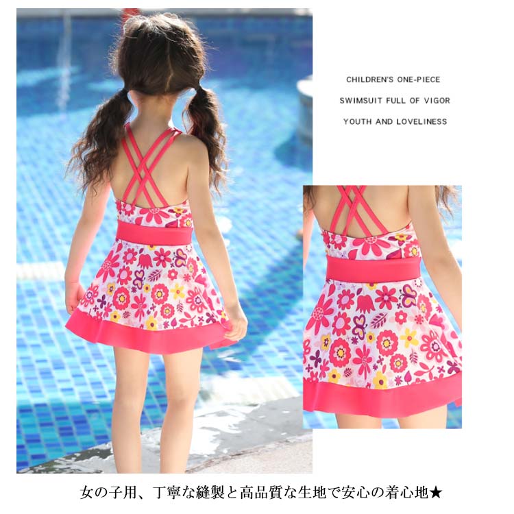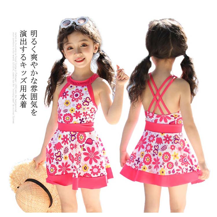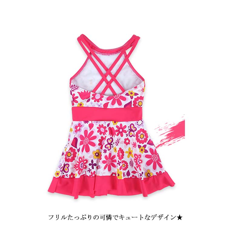 水着 女の子 女児 キッズ用水着 ガールズ ワンピース水着 クロスストラップ 子供水着 ミズギ スイムウェア ビキニ オールインワン 小花柄 フリル フラワー柄 プール キッズ