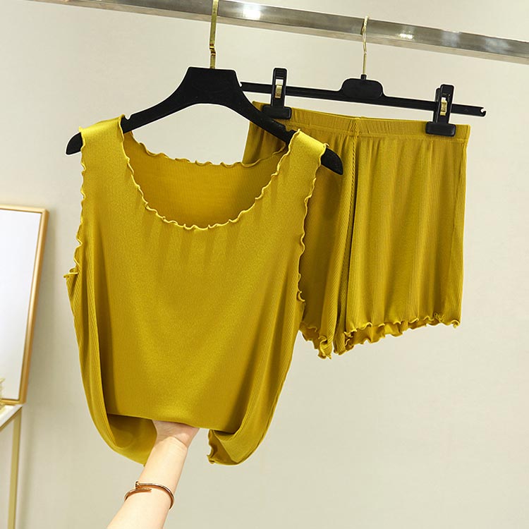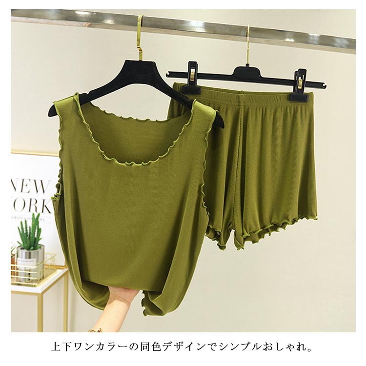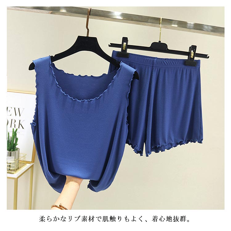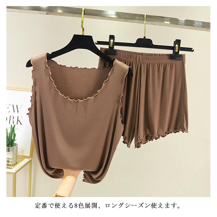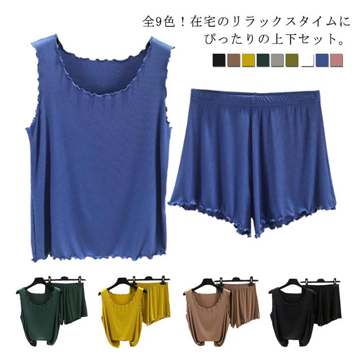 全9色!タックトップとショートパンツのセットアップ レディース ルームウエア 部屋着 上下セット 2点セット パジャマ リブ編み 大きサイズ カジュアル シンプル 無地 春夏 夏服