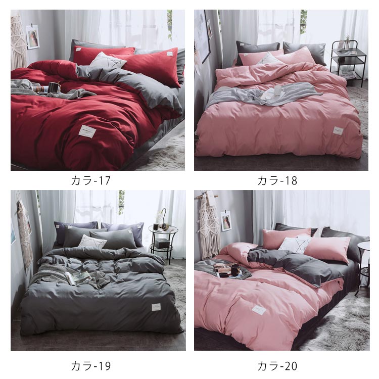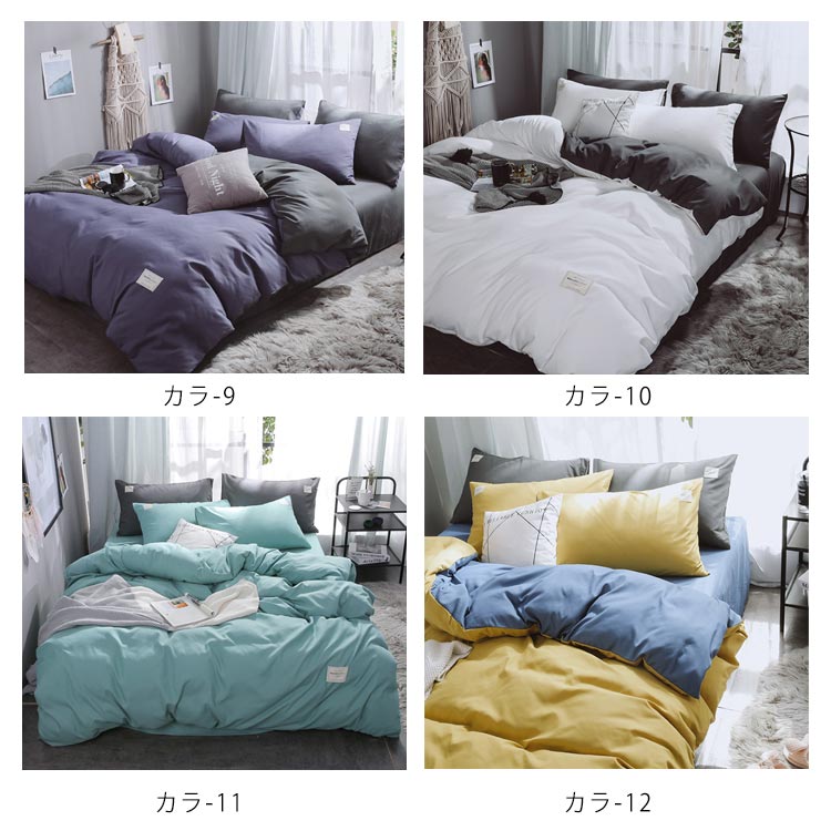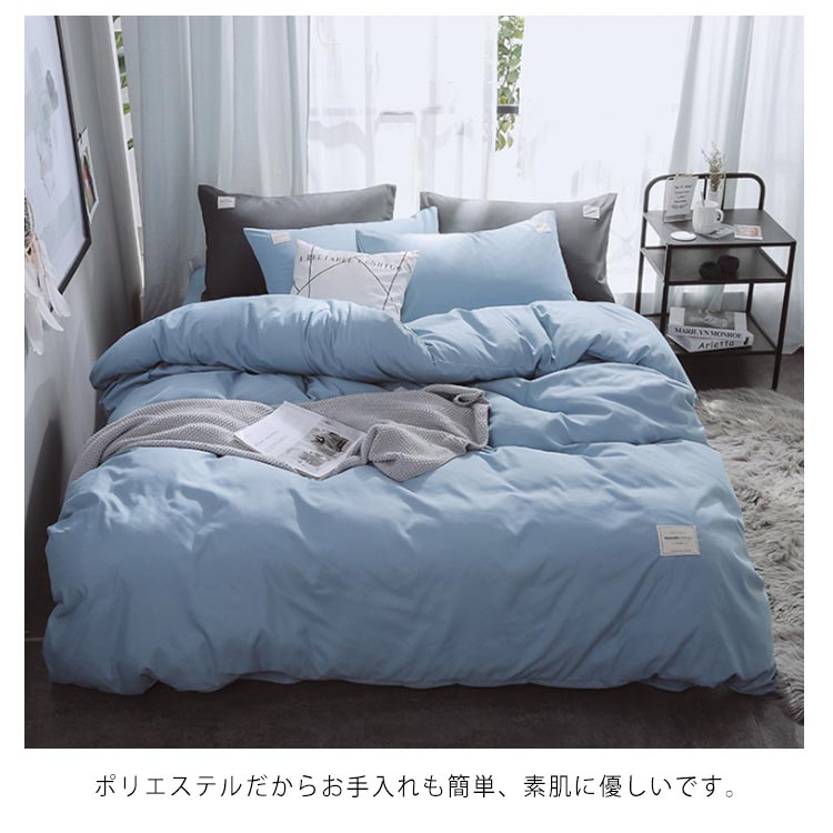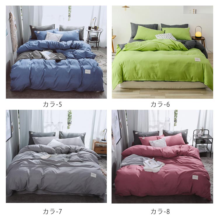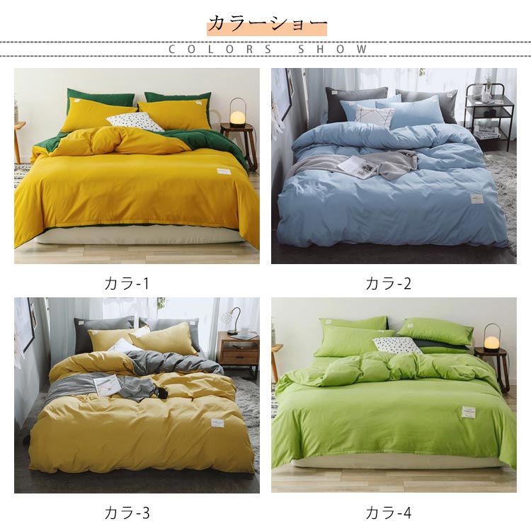 4点セット内容:掛け布団カバーx1、シーツx1、枕カバーx2