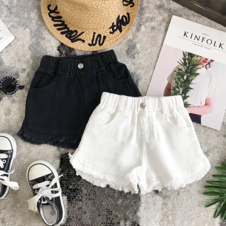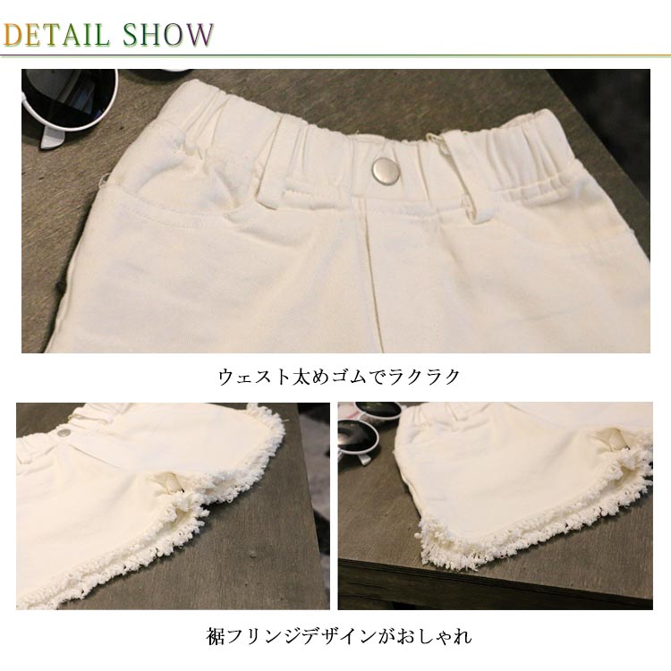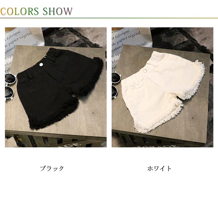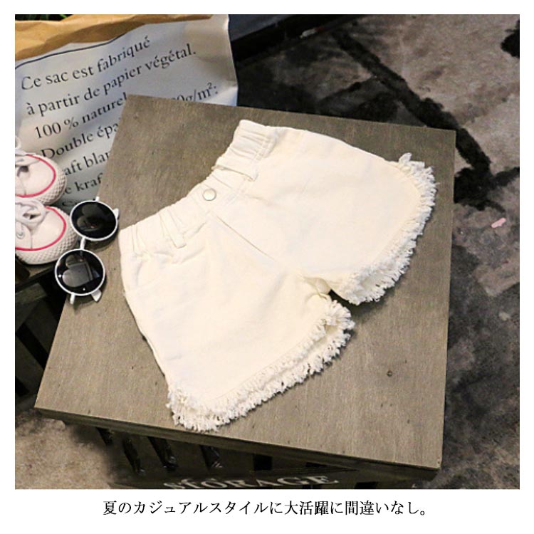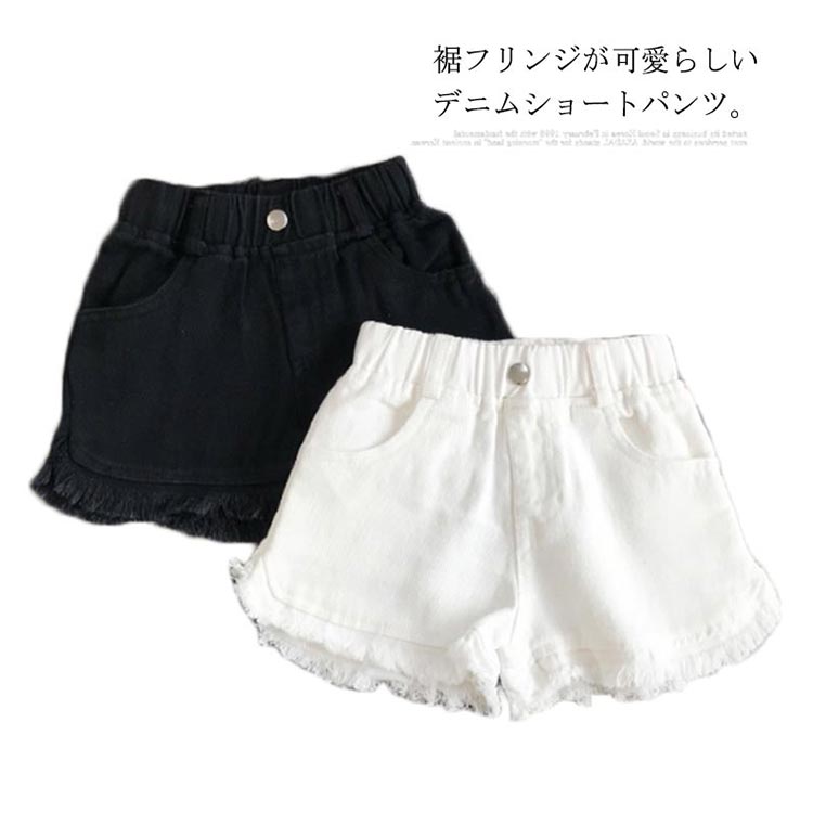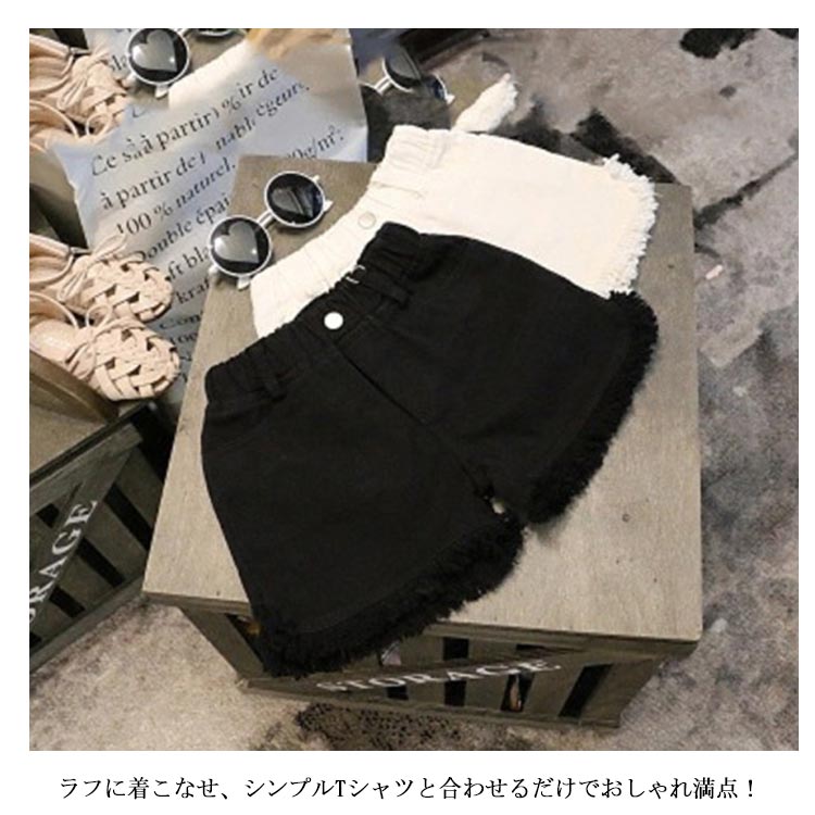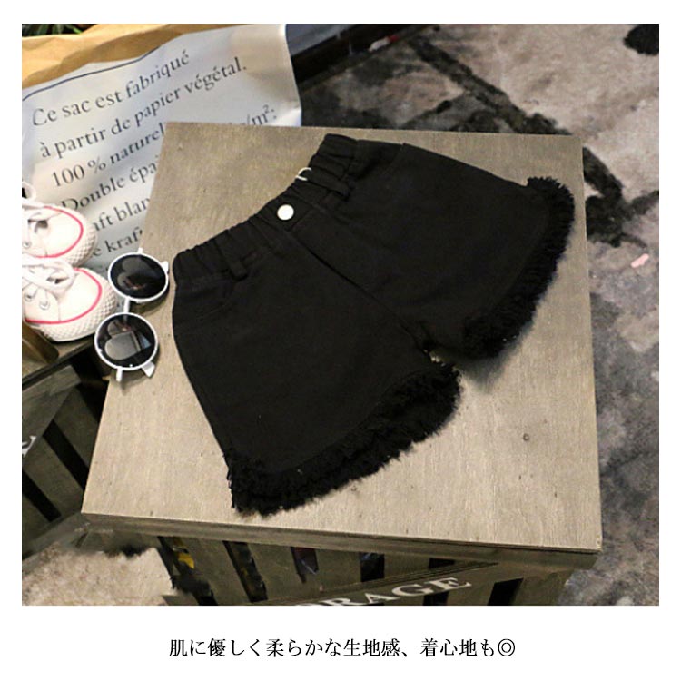 デニムパンツ ショートパンツ フリンジ 送料無料 子供服 女の子 ウエストゴム ショパン ホットパンツ 切りっぱなし 無地 キッズ 子ども ボトムス おしゃれ 夏 3歳 4歳 5歳 6歳 7歳 8歳
