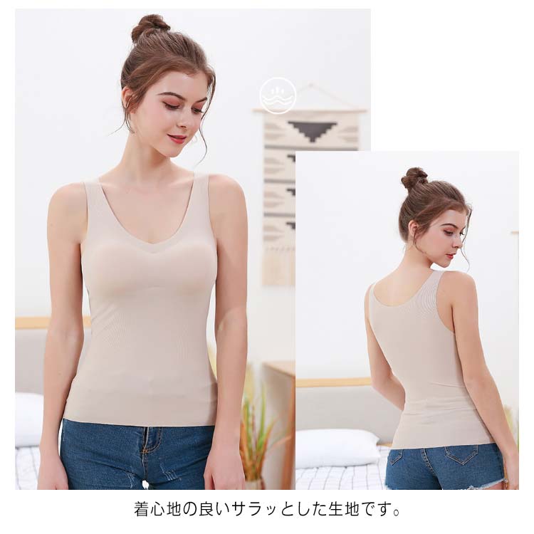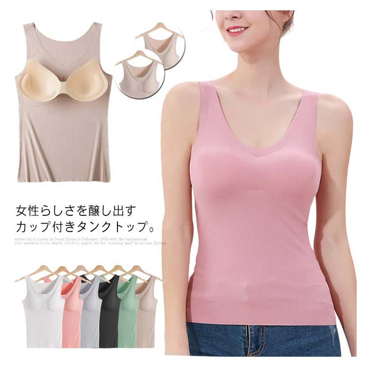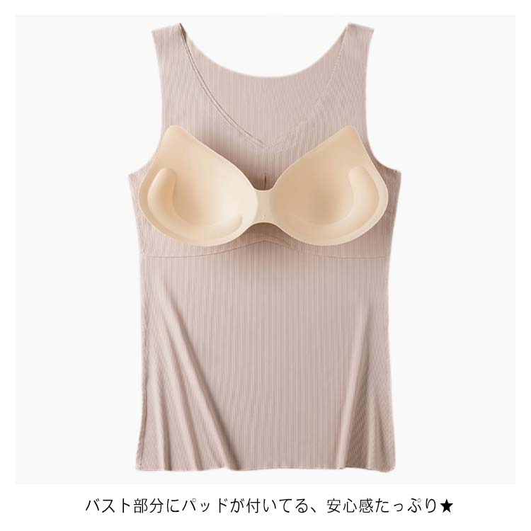 カップ付き タンクトップ レディース キャミソール インナー カップ内臓ブラトップ 寝間着 ノンワイヤー ナイトウエア インナー 美バスト 無地キャミソール 薄手 Vネック ハウスウエア 部屋着 パッド付き 爽やか 伸縮性 薄手 柔らかい 夏物 夏新作