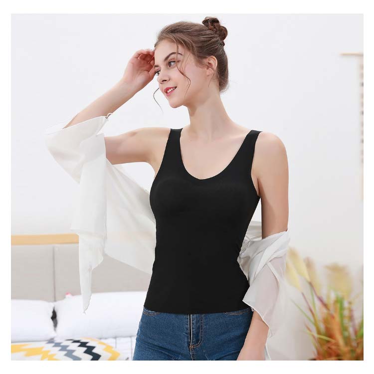 | 女性らしさを醸し出すカップ付きタンクトップ。 バストをしっかりホールドしてくれる優秀インナー! 着心地の良いサラッとした生地です。 吸湿速乾性のある生地なのでインナーとしてはもちろん、部屋着やジムウェアとしてもお使い頂けます☆ アウターにもひびかないのでオシャレの邪魔をしません。 | |