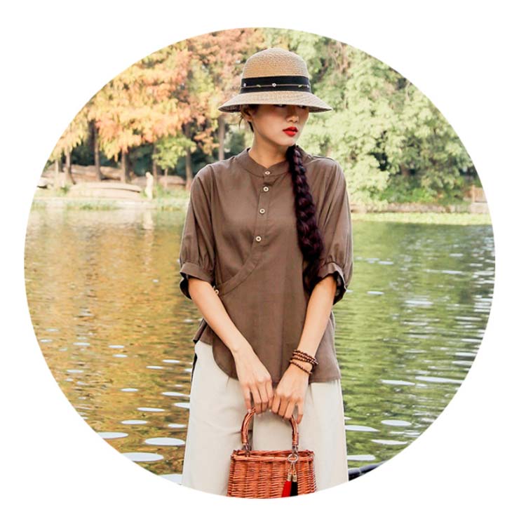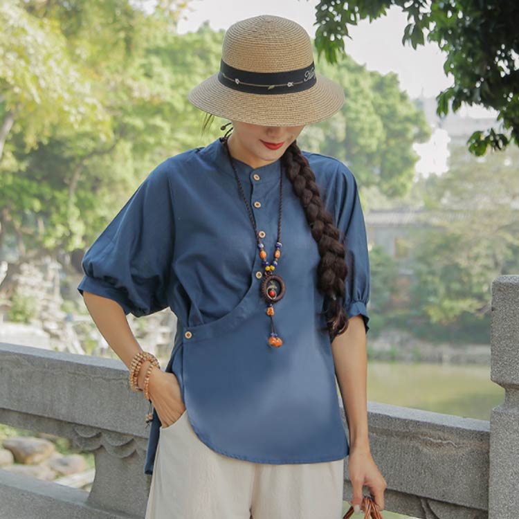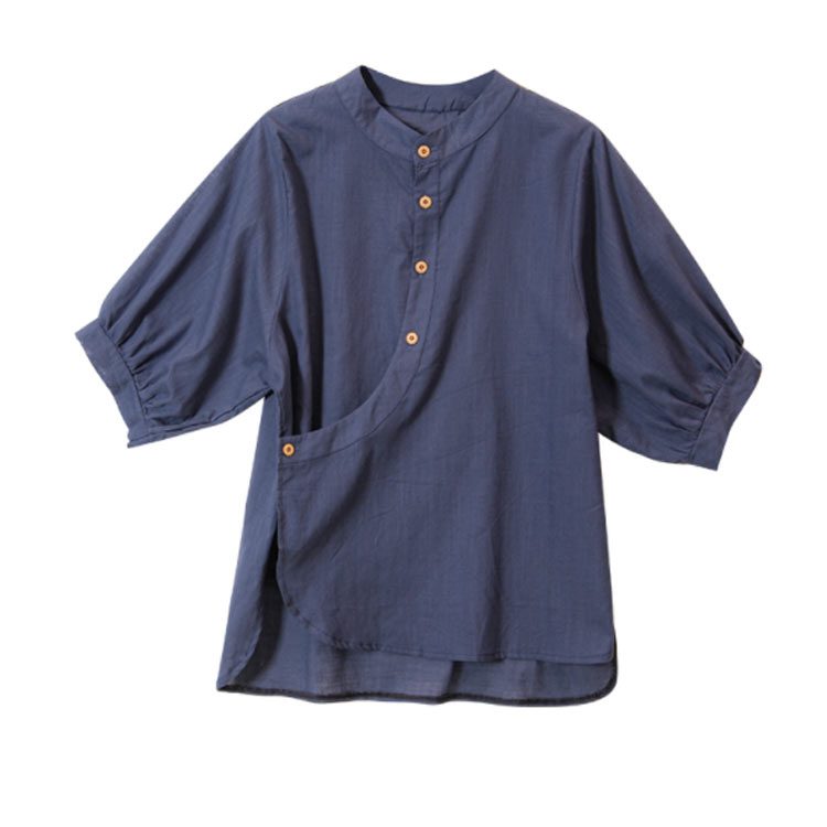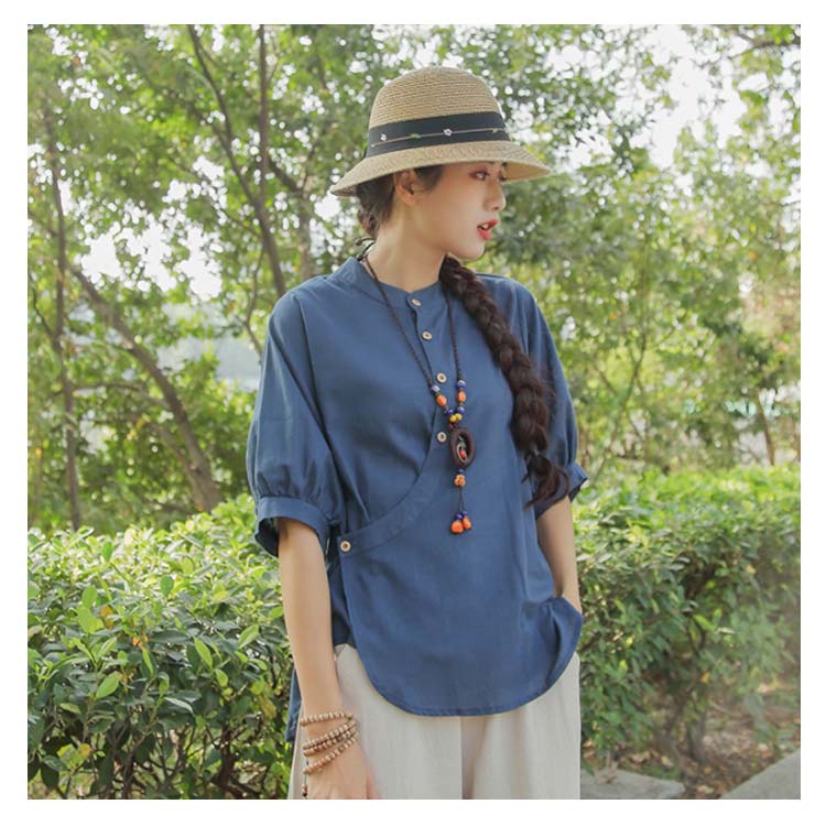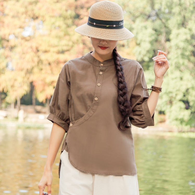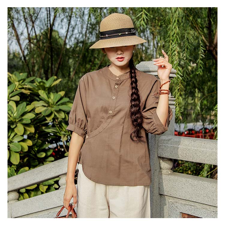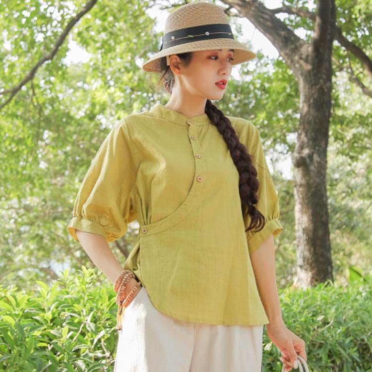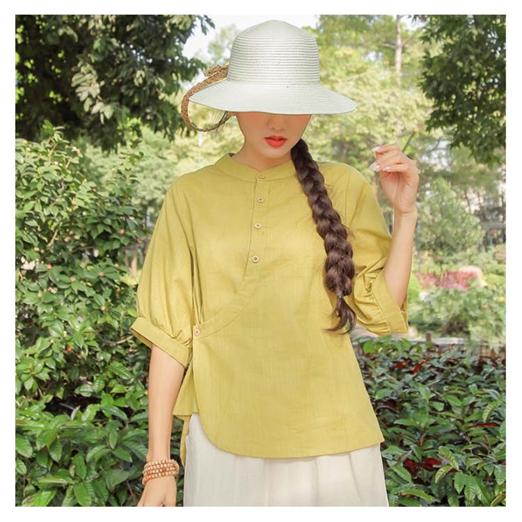 リネンシャツ リネン シャツ レディース 綿 麻 綿麻 麻生地 綿麻シャツ 五分袖 ブラウス スタンドカラー エレガント 立ち襟 シンプル 無地 薄手 ゆったり お洒落 カジュアル トップス 夏物 夏新作 送料無料