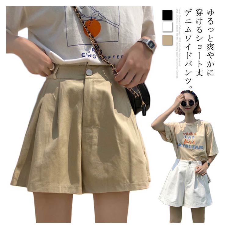 デニム レディース ショートパンツ ハーフパンツ ワイドパンツ ガウチョパンツ デニムパンツ 無地 薄手デニム ウエストゴム ポケット付き ゆったり お洒落 カジュアル 体型カバー 着痩せ 美脚 脚長 夏新作 送料無料