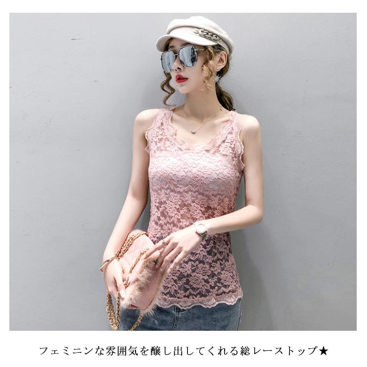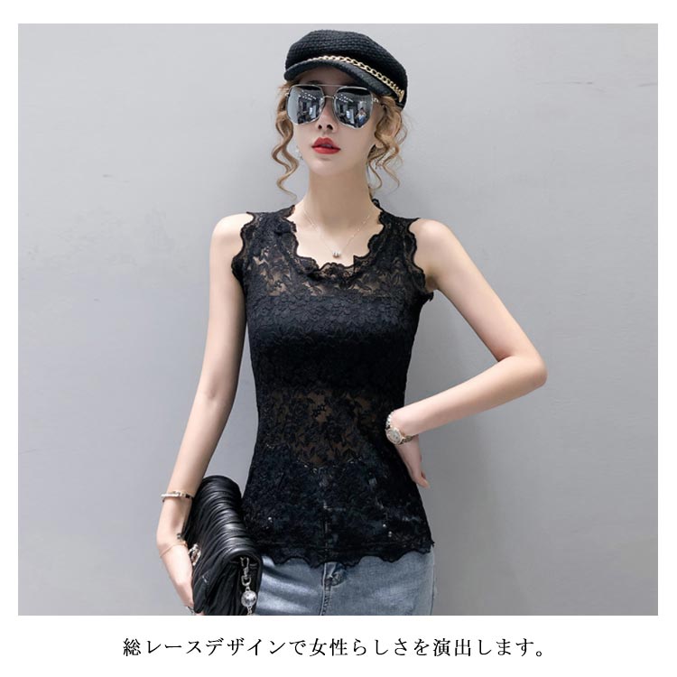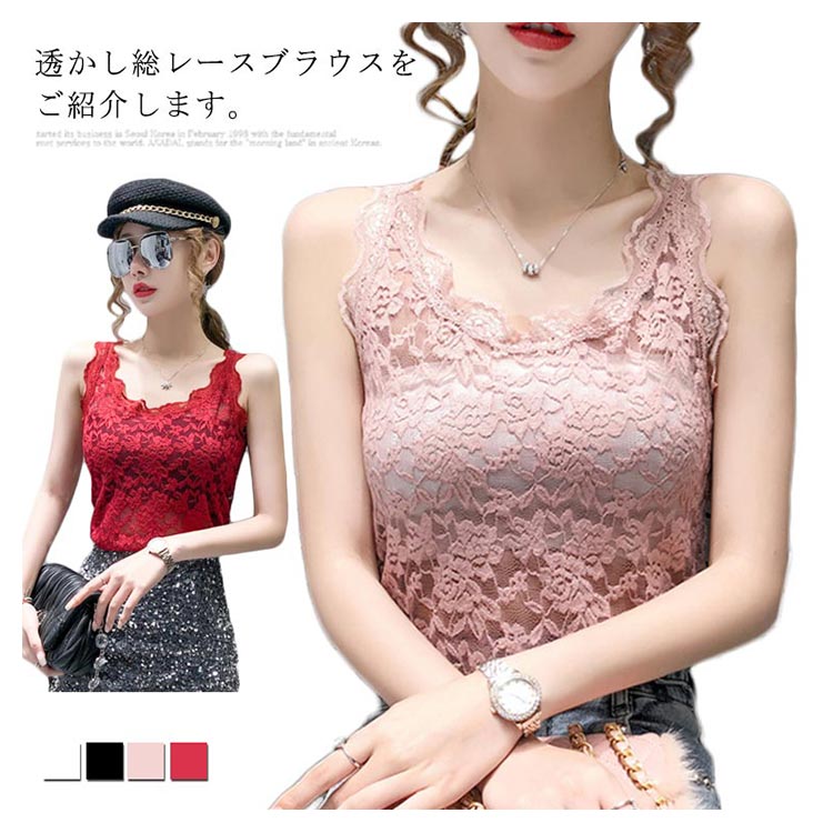 総レースブラウス レディース ブラウス 総レース タンクトップ レース 花柄レース フラワーレース 透け感 透けブラウス ノースリーブ 薄手 キャミソール Vネック スケスケ 上品 セクシー トップス インナー 重ね着 レイヤード プルオーバー 新作 送料無料
