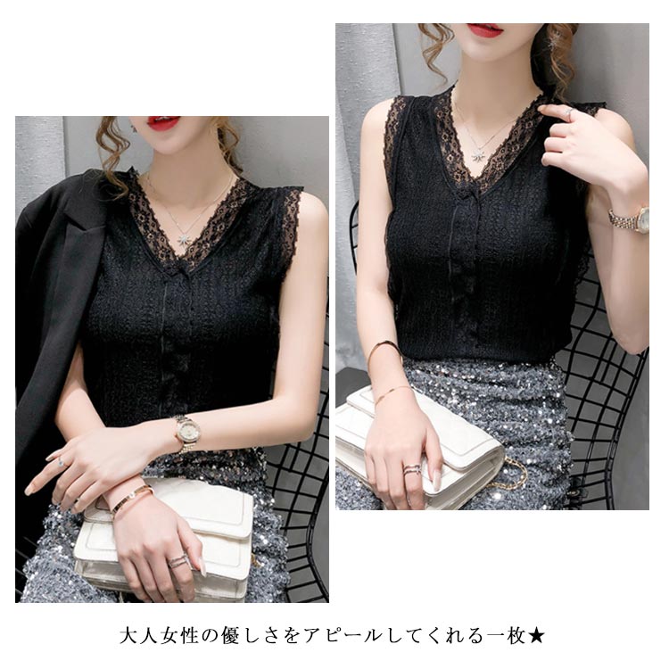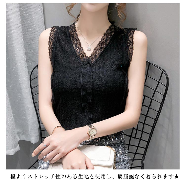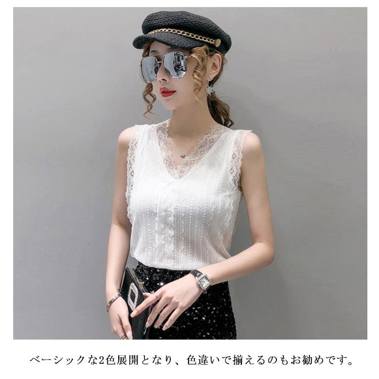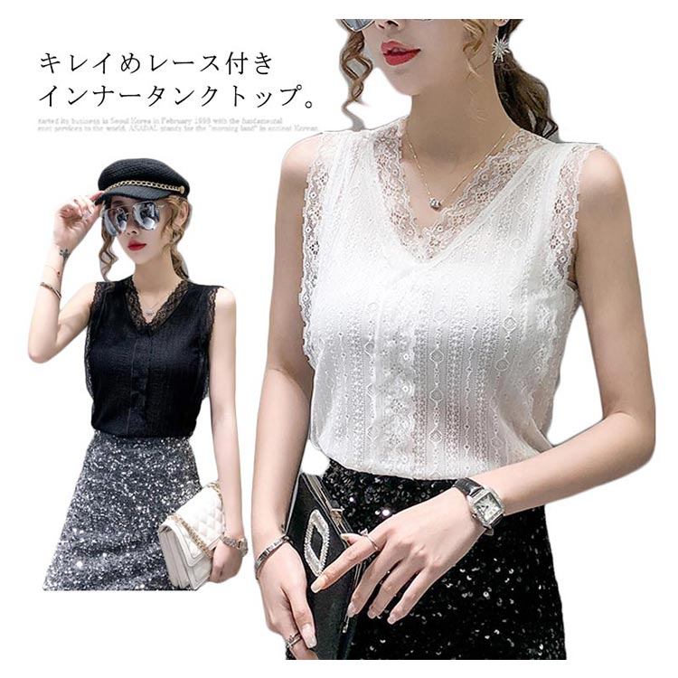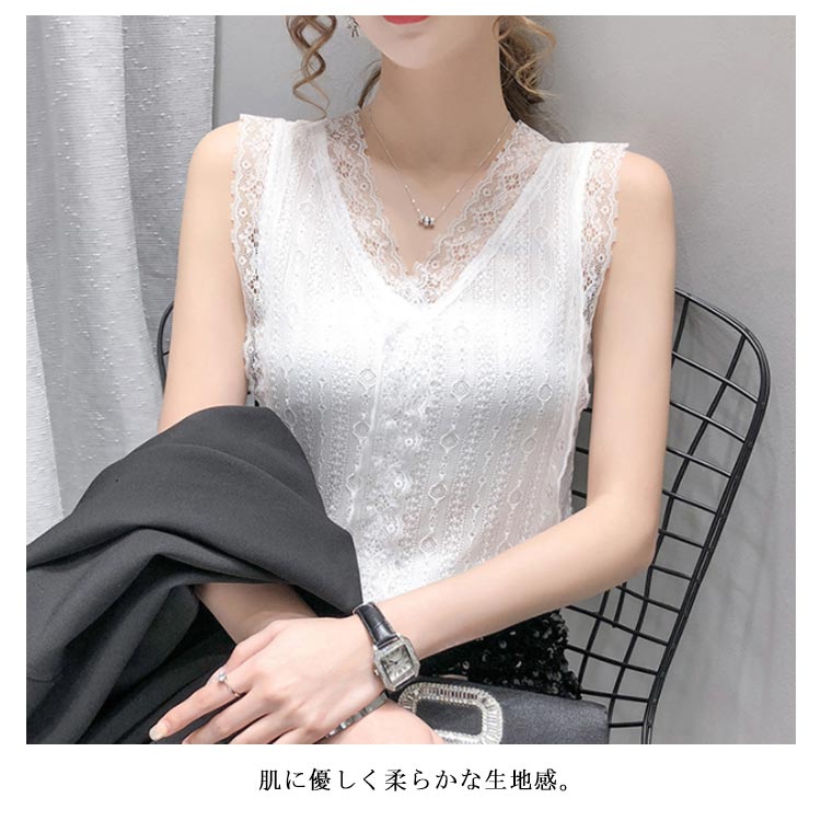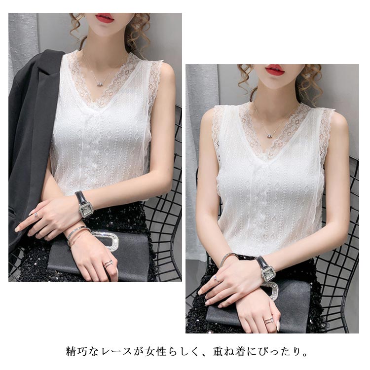 タンクトップ レディース レーストップス インナー キャミソール インナータンク レース付き Vネック 薄手 ベーシック 下着 透かしレース 重ね着 お洒落 キレイめ オールシーズン 夏新作 送料無料