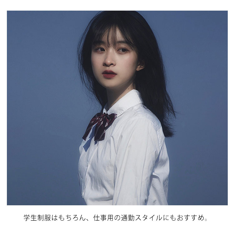 | シンプルでまわりと差がつくスクールシャツ♪ 学生制服はもちろん、仕事用の通勤スタイルにもおすすめ。 シンプルなデザインなのでスカートやパンツとの相性も抜群です! 季節によっては、上にジャケットを羽織ったり、1枚で決めたりと、オールシーズン使えます。 | |