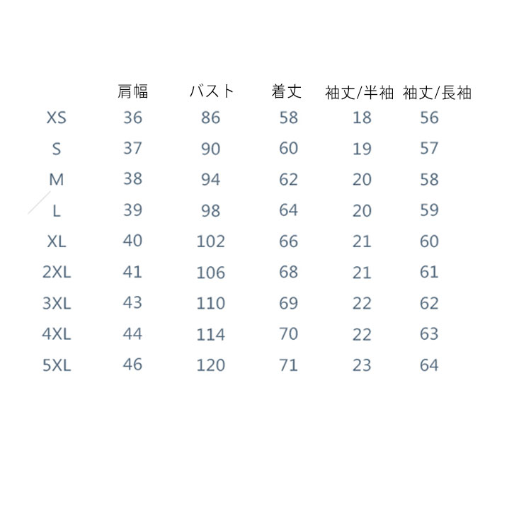 | サイズ | XS S M L XL 2XL 3XL 4XL 5XL |