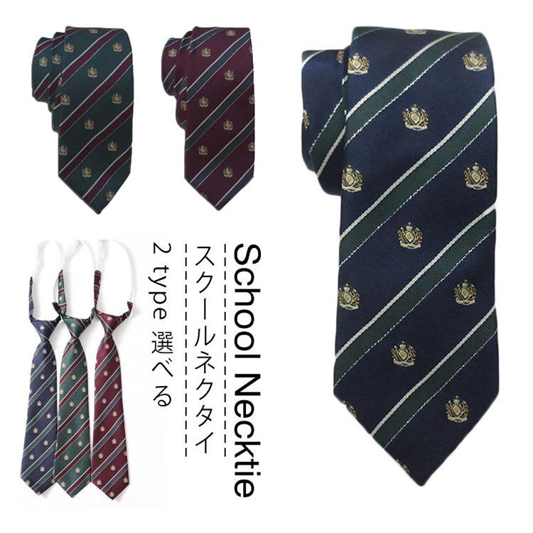 クラウン柄 ネクタイ スクールネクタイ ワンタッチ ネクタイ 男女兼用 JK制服 男子 女子 高校生 学生服 中学 女子高生 通学 学校 制服 チェック ストライプ 学生服 送料無料