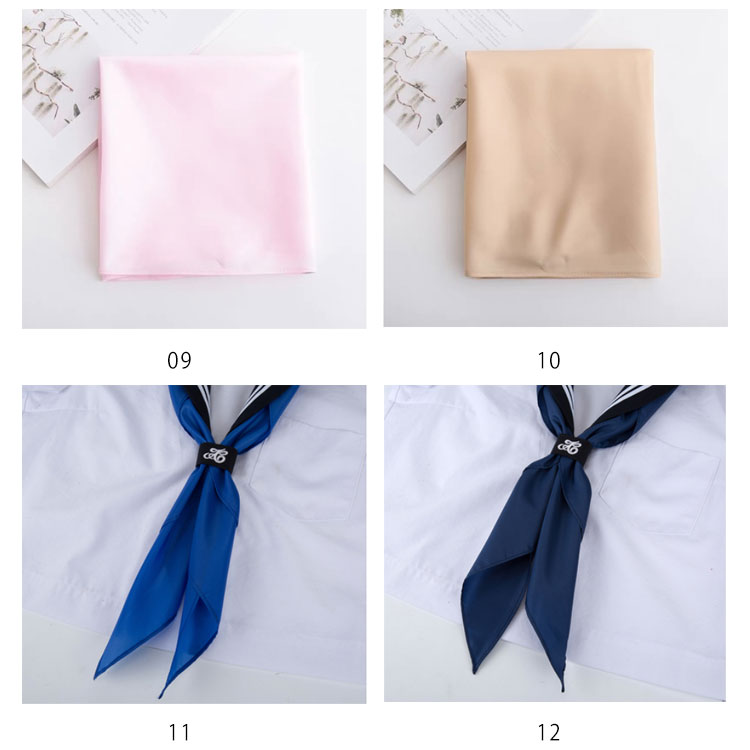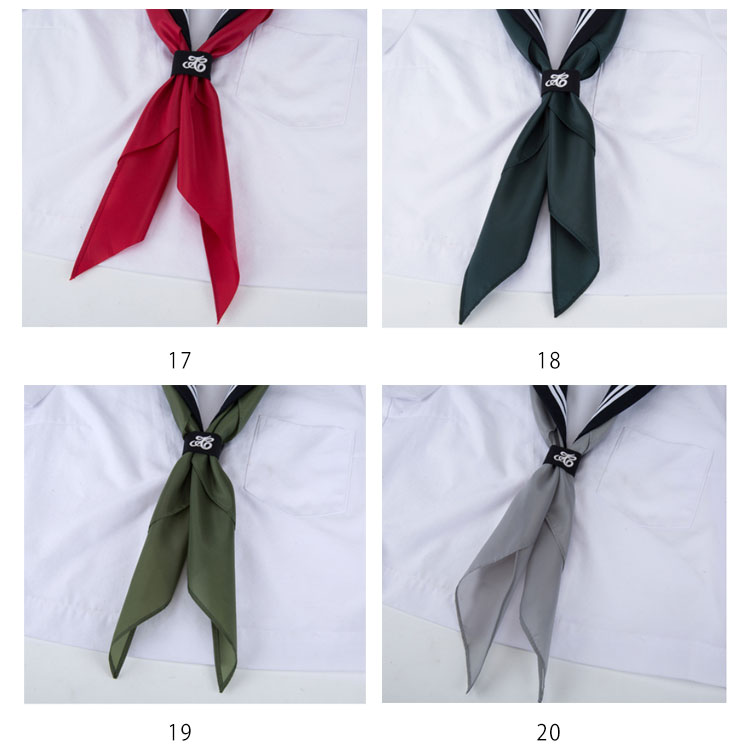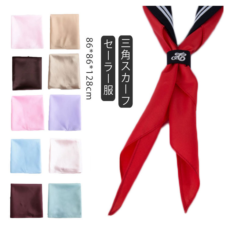 | セーラー服用三角形のスカーフがリーズナブルな価格で登場しました! 豊富なカラーバリエーションで色違いで揃えたくなるアイテムです。 自由制服、卒業式に最適! | |