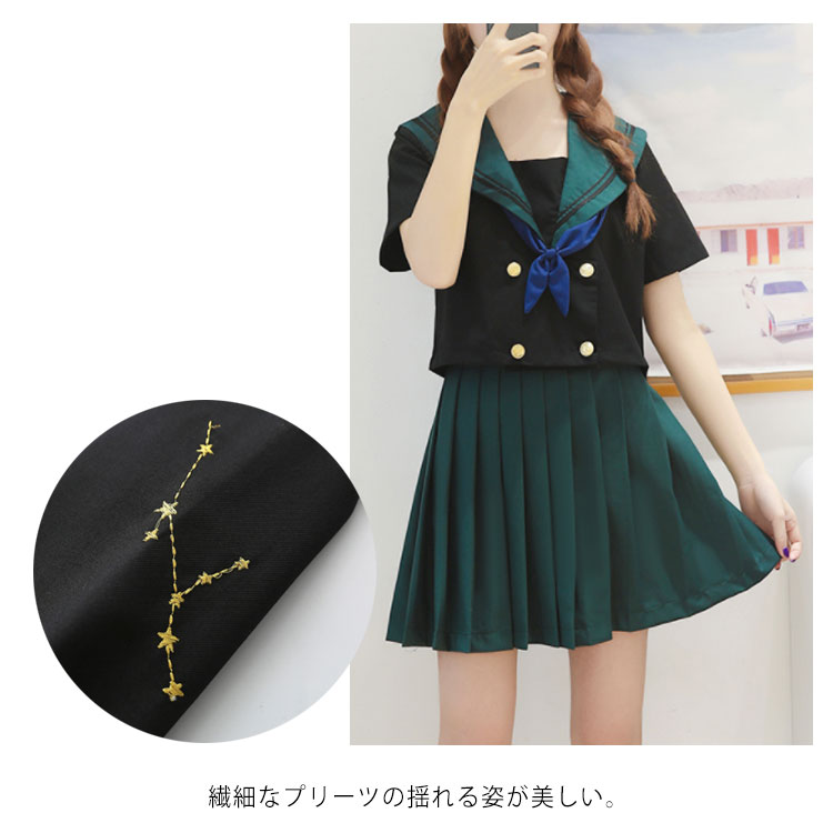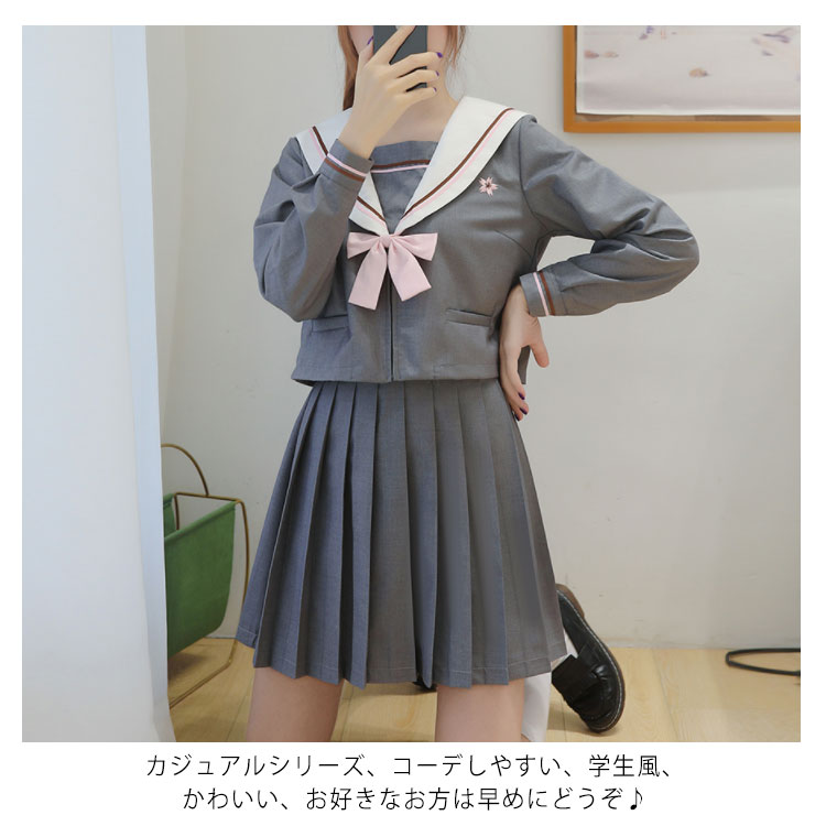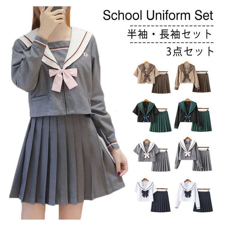 セーラー風 学生服 制服セット 女子高校生 セーラー襟 学生服 制服 高校生制服 コスプレ JK制服 制服 半袖 長袖 上下セット 3点セット 学生服 女子高生 学生服 セーラー服 制服 コスプレ コスチューム 衣装 仮装 文化祭 可愛い 送料無料