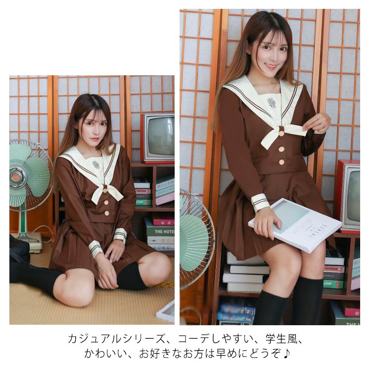 | 大人気セーラー服が新登場! セーラー風の襟元は可愛い雰囲気に魅せてくれる。 カジュアルシリーズ、コーデしやすい、学生風、かわいい、お好きなお方は早めにどうぞ♪ | |