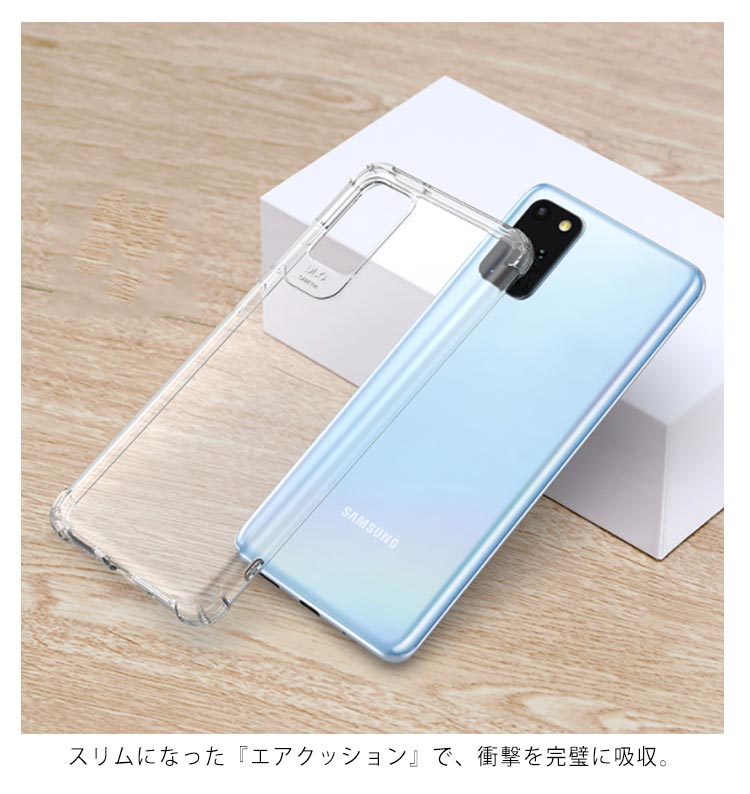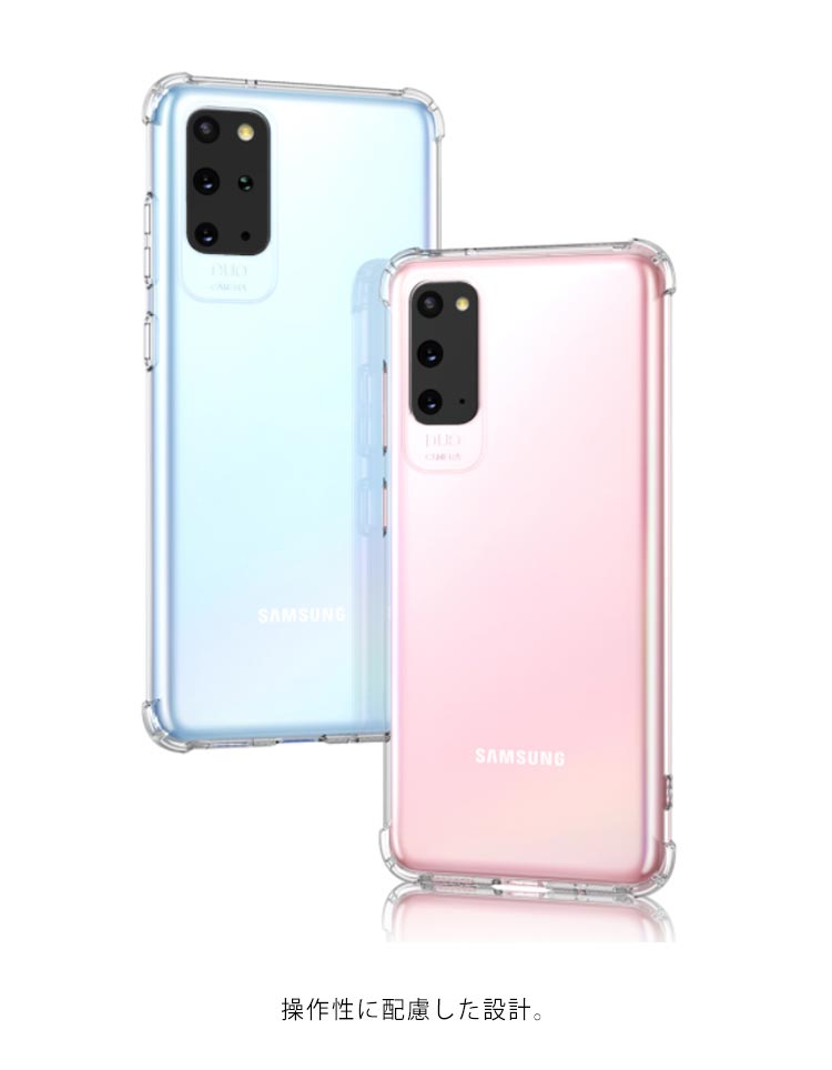 | Galaxy S20/S20+/S20 Ultra衝撃吸収クリアケース 透明度の高いTPU素材を使用しgalaxy本体の色を生かす。 側面エアポケットが衝撃を吸収。 落下の衝撃を分散させるエアーポケット構造を採用。 スマートフォンをうっかり落としてしまっても大丈夫。 操作性に配慮した設計。 スマートフォンの背面と接触する部分には細かな凹凸が付いており、ケースを長期間着け続けていても張り付きにくくなっています。 前面部もスマートフォンの画面より高く設計し画面が地面に直接触れることはありません。 | |