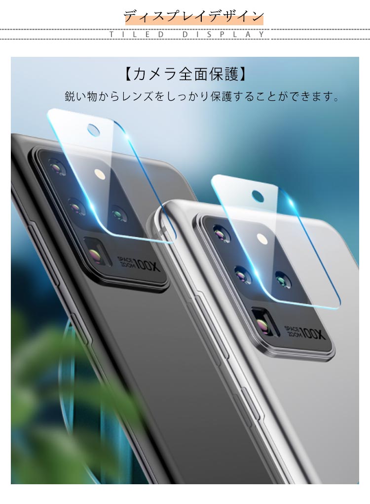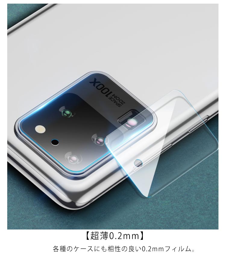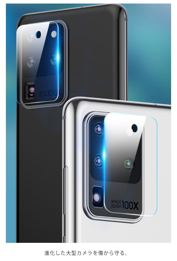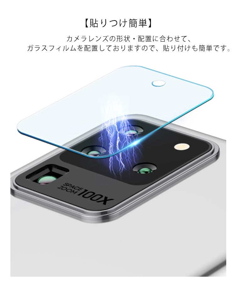 | Galaxy S20シリーズレンズ保護ガラスフィルム。 【カメラ全面保護】 鋭い物からレンズをしっかり保護することができます。 【超薄0.2mm】 各種のケースにも相性の良い0.2mmフィルム。 【高透過率】 透過率99%以上、撮影の効果は元の鮮やかさを維持しています。 【貼りつけ簡単】 カメラレンズの形状・配置に合わせて、ガラスフィルムを配置しておりますので、貼り付けも簡単です。 | |