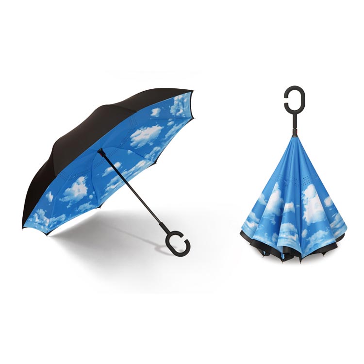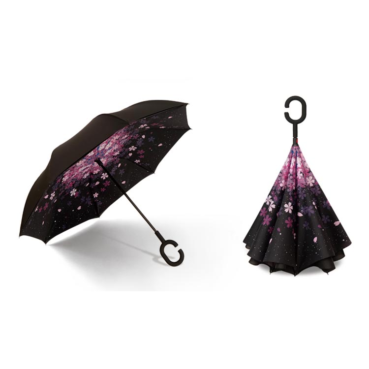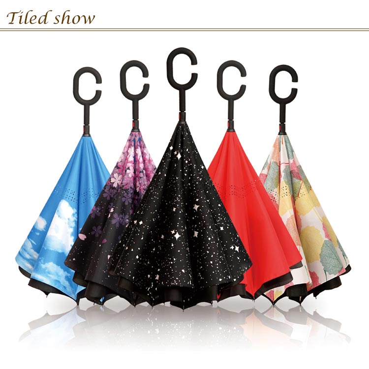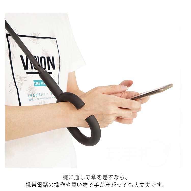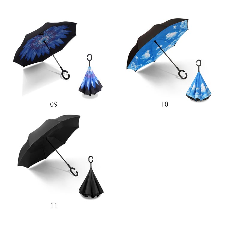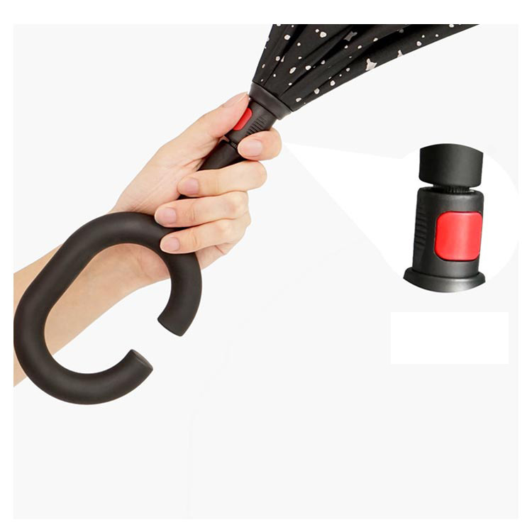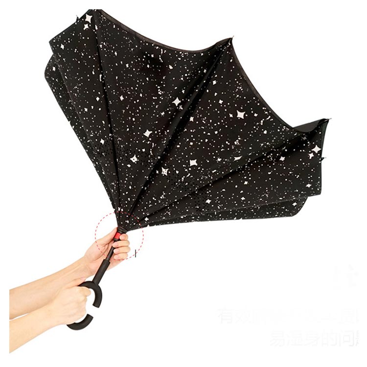 | 逆折り式雨に濡れた面が傘を閉めたとき内側になるから傘に触れても濡れる心配はありません。 水滴が内側に収納され、洋服や荷物が濡れることなくて周りの人に迷惑をかけることがなくなります。 C型デザインを採用し、手首や腕にかけても大丈夫で両手が自由に使えます。 腕に通して傘を差すなら、携帯電話の操作や買い物で手が塞がっても大丈夫です。 | |