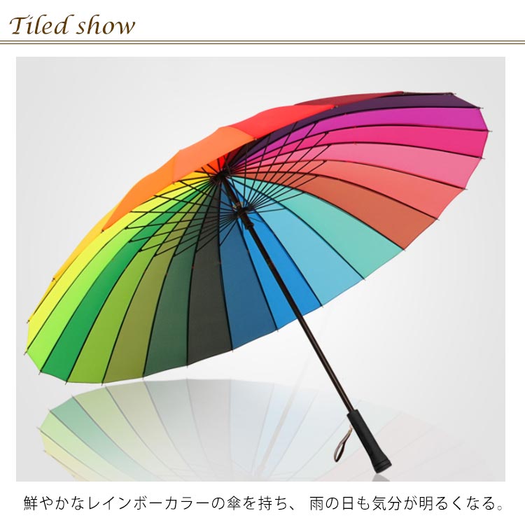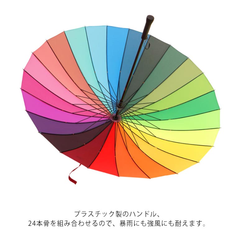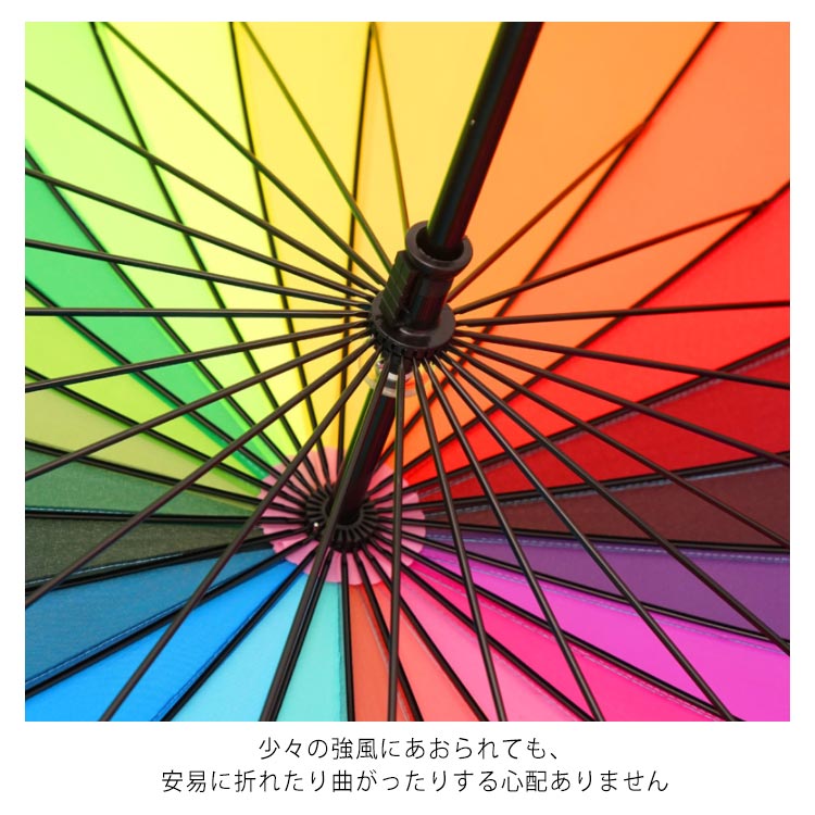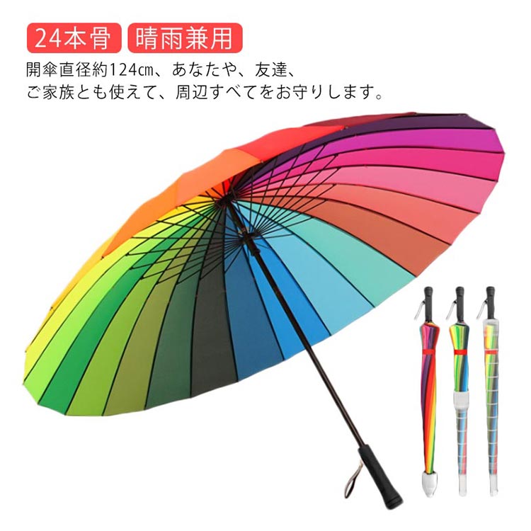 レインボー傘 レディース 長傘 24本骨 メンズ グラスファイバー 丈夫 傘 軽い 大きい 晴雨兼用 男女兼用 新作