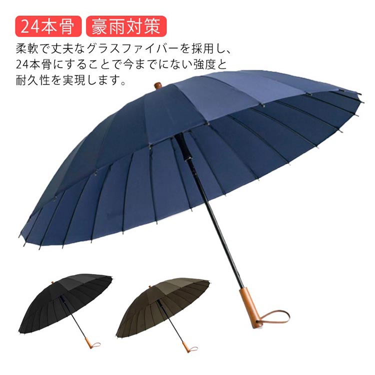 長傘 メンズ レディース 24本骨 210T高強度グラスファイバー 丈夫 耐強風 テフロン製 超撥水 梅雨対策 豪雨対策 木製手元 おしゃれ 新作