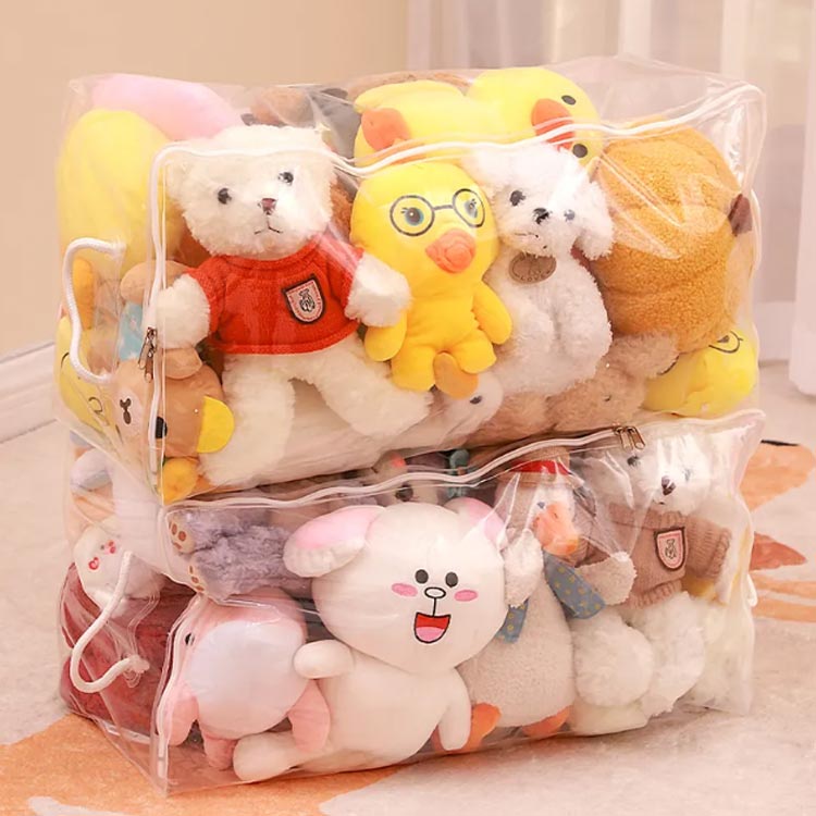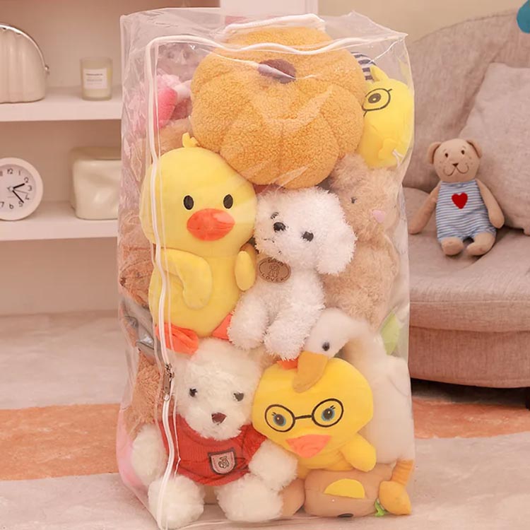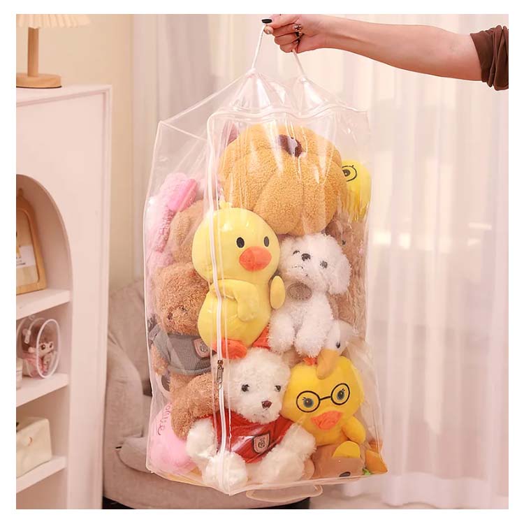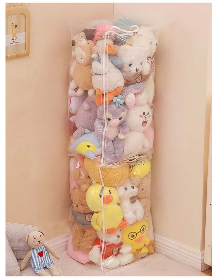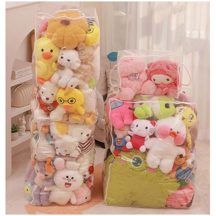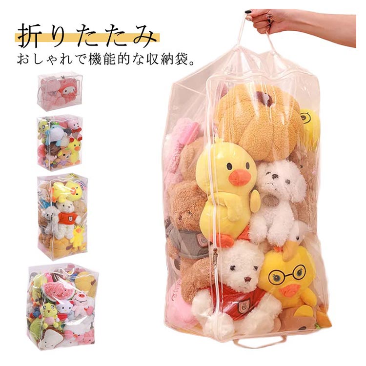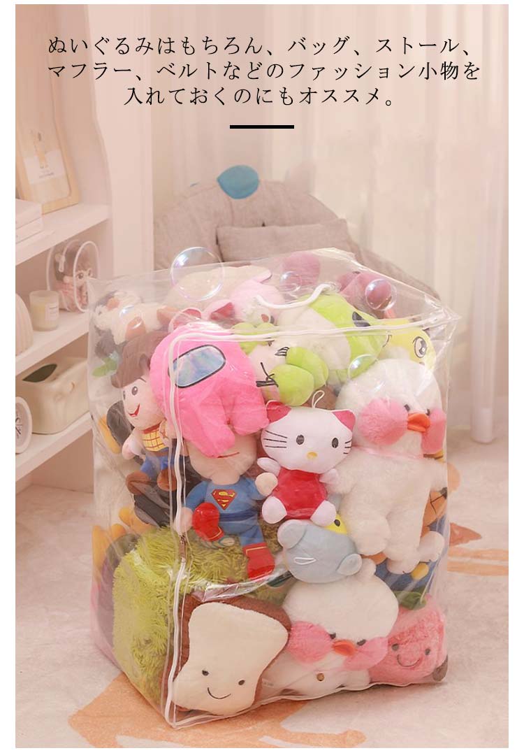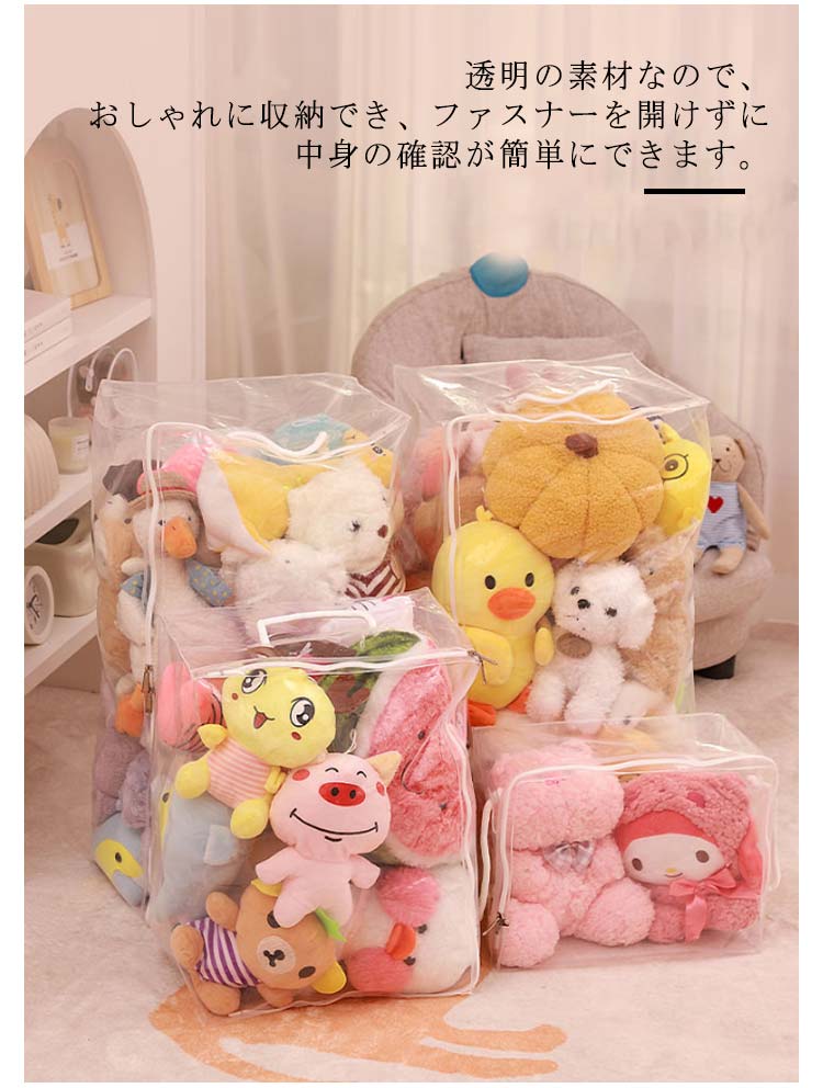 ぬいぐるみ 収納 透明 収納袋 中身が見える おもちゃ収納 収納ボックス ディスプレイ 折りたたみ 見せる収納 小物収納 クローゼット収納 防塵 防湿 防カビ ベルト付 衣類 布団 収納