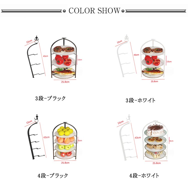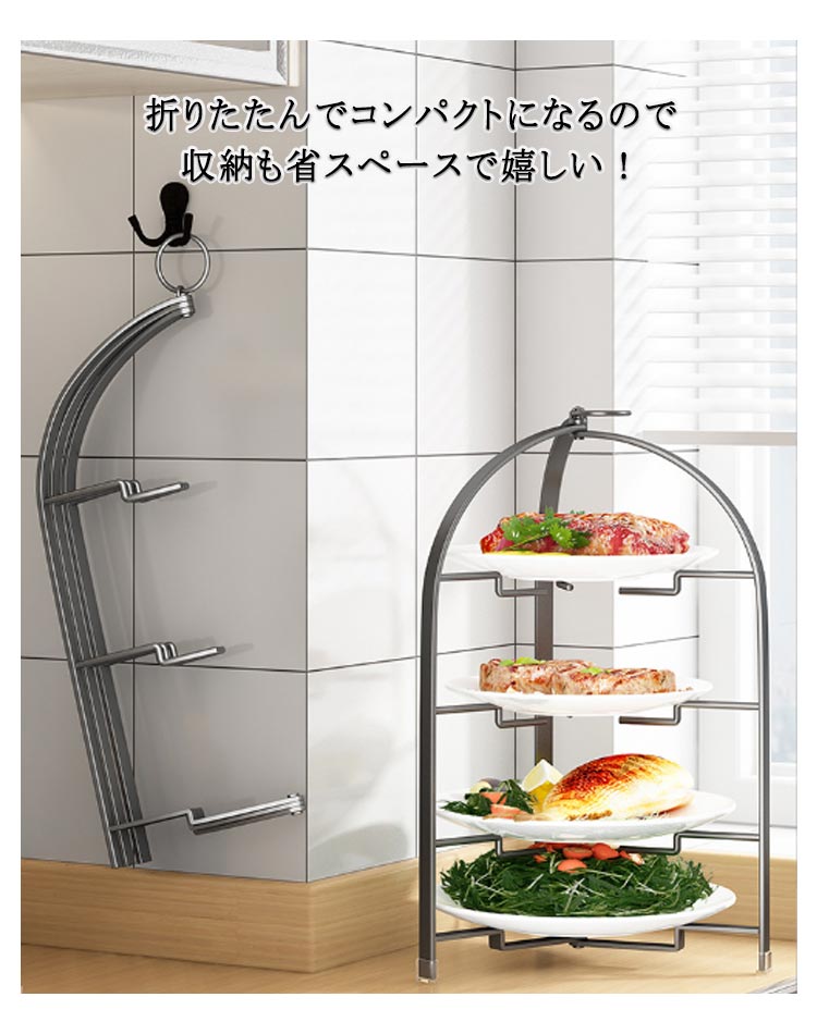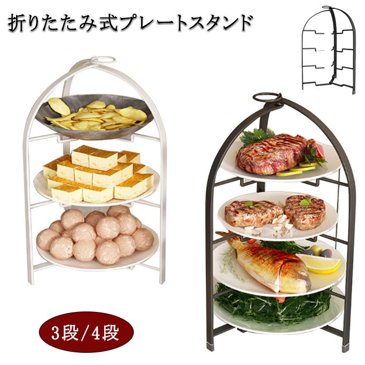 ケーキスタンド 折りたたみ 3段 4段 プレートスタンド フォールダブル ケーキ台 アフタヌーンティー スタンド ハイティースタンド スイーツスタンド 焼き菓子 クッキー マフィン フード おしゃれ シンプル 高級 上品 カフェ かわいい スリム フックなし