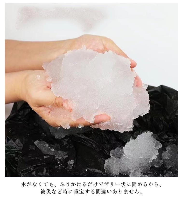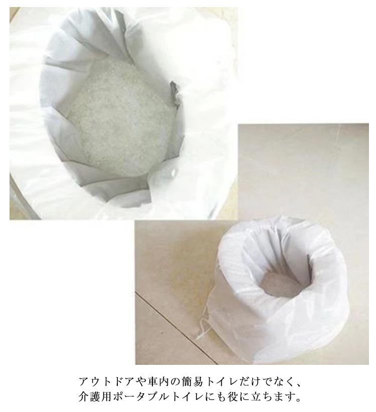 | 非常時や断水、停電でトイレが使えなくなった時に役立つ簡易トイレ用凝固剤。 凝固剤は個別包装となっており、衛生的で保管?持ち運びしやすいポータブルトイレ用凝固剤。 凝固剤1袋で約500mlの水分を固めることが可能です。水分を素早く固めるので使用後の水分モレの心配がありません。 水がなくても、ふりかけるだけでゼリー状に固めるから、被災など時に重宝する間違いありません。 アウトドアや車内の簡易トイレだけでなく、介護用ポータブルトイレにも役に立ちます。 | |