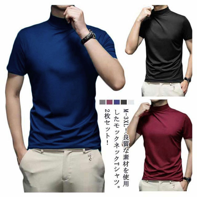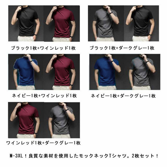 | M-3XL!良質な素材を使用したモックネックtシャツ。2枚セット! シンプル無地のカジュアルデザイン? 着回ししやすいメンズ用Tシャツです。 肌触りが柔らかく着心地がいいので、春夏でも爽やかに着られます。 | |