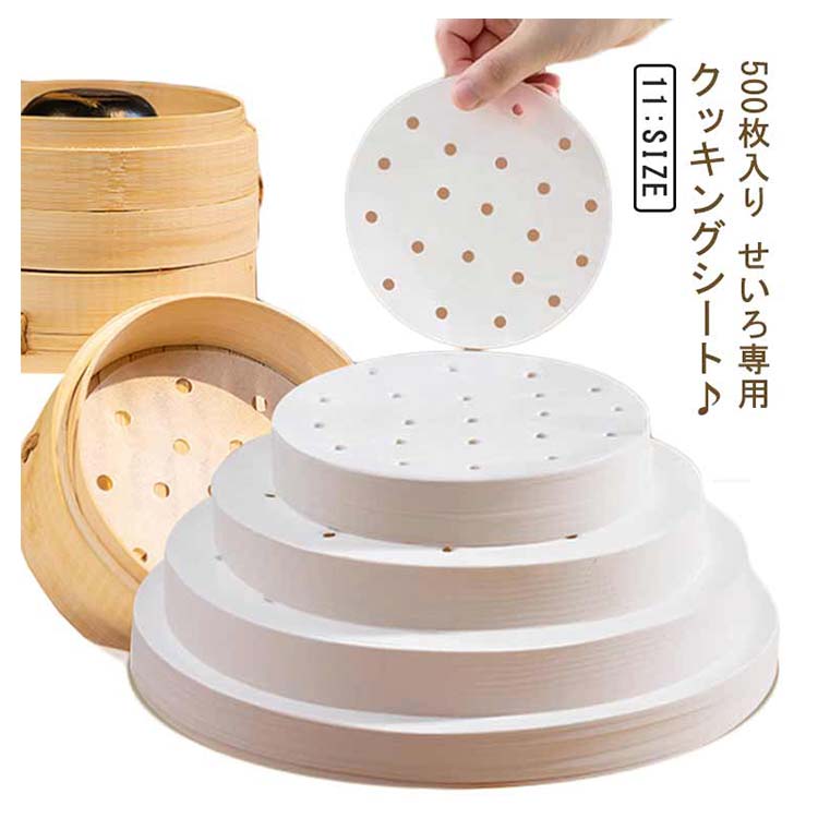 500枚入り せいろ シート 直径 9cm 10cm 11.5cm 12.5cm 13cm 14cm 15cm 16cm 17cm 18cm 20cm せいろ専用クッキングシート 調理用紙 セイロ用 蒸紙 蒸篭 せいろ用紙 料理用クックシート 穴有り 蒸し器 丸型 クッキングシート 中華せいろ シート 用紙 ペーパー くっつかない