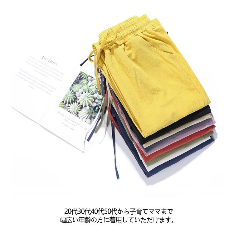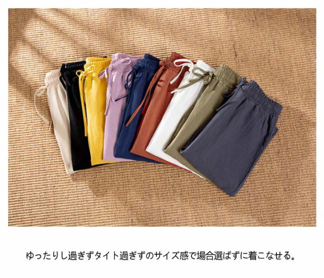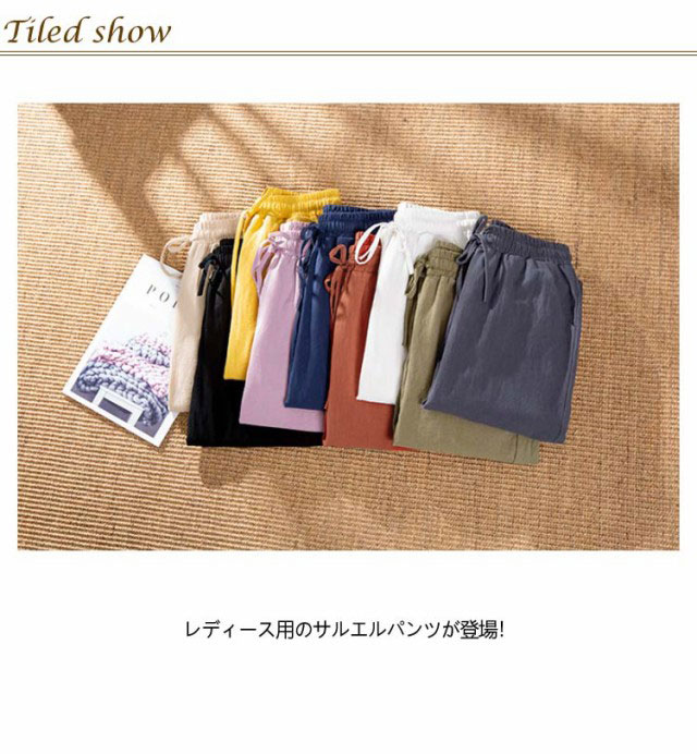 綿麻パンツ レディース 綿麻 サルエルパンツ リネンパンツ 麻 リネン コットン カジュアルパンツ イージーパンツ テーパードパンツ 9分丈 無地 ウエストゴム ボトムス ロングパンツ リラックスパンツ 女性用 九分丈パンツ ルームウェア 薄手 夏 おしゃれ 送料無料