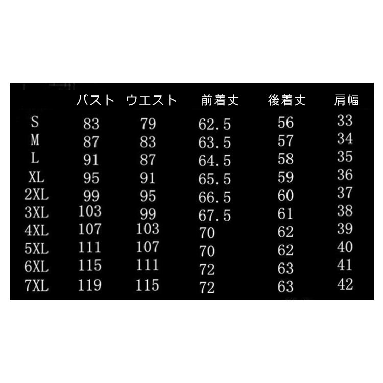 | サイズ | S M L XL 2XL 3XL 4XL 5XL 6XL 7XL |