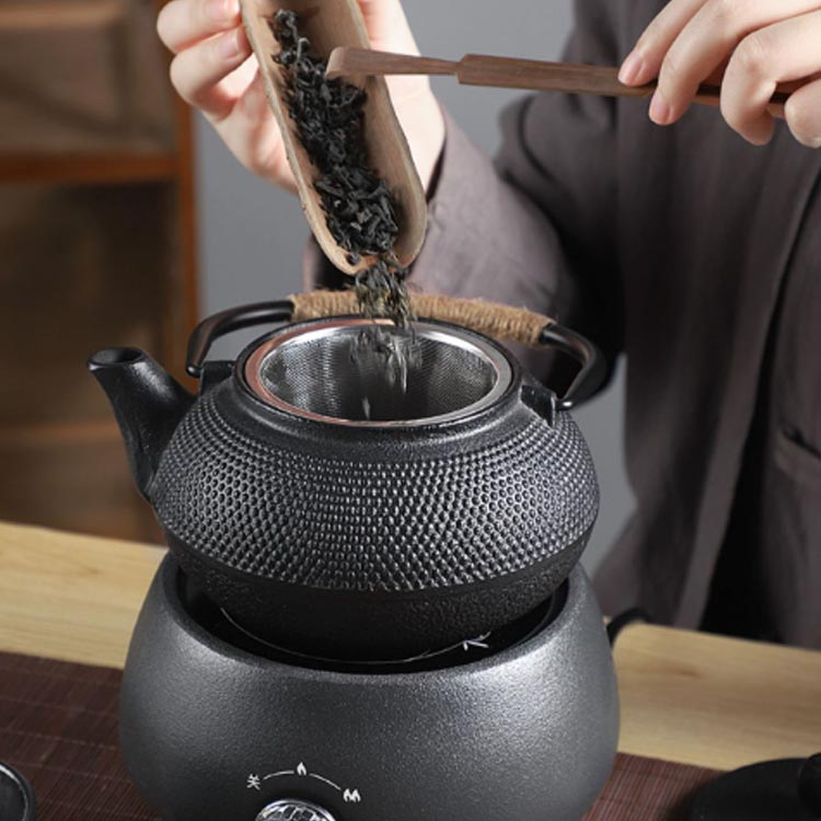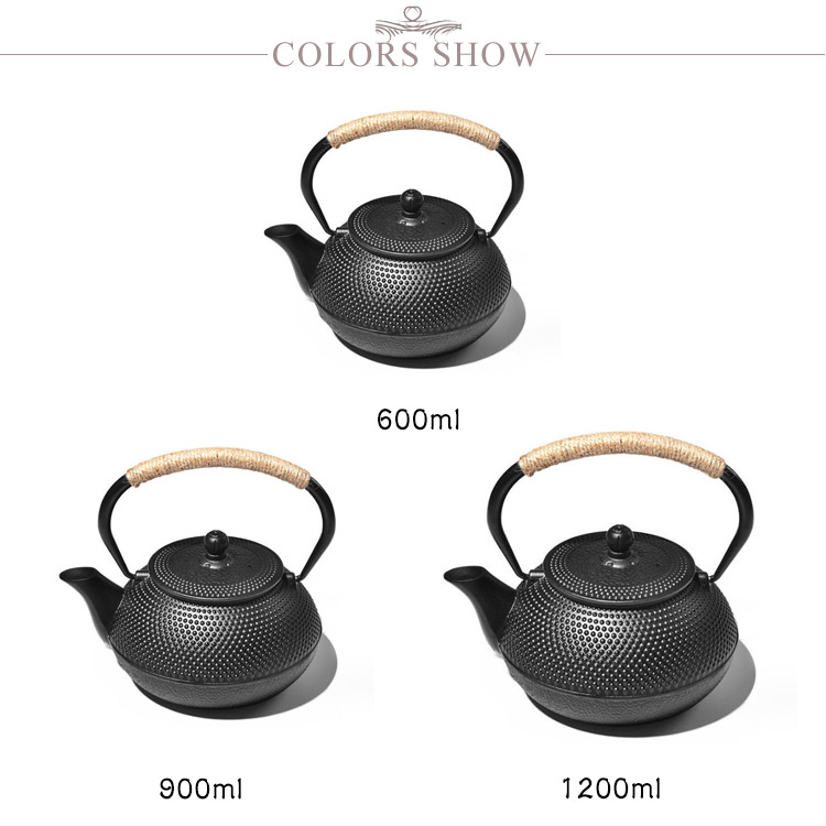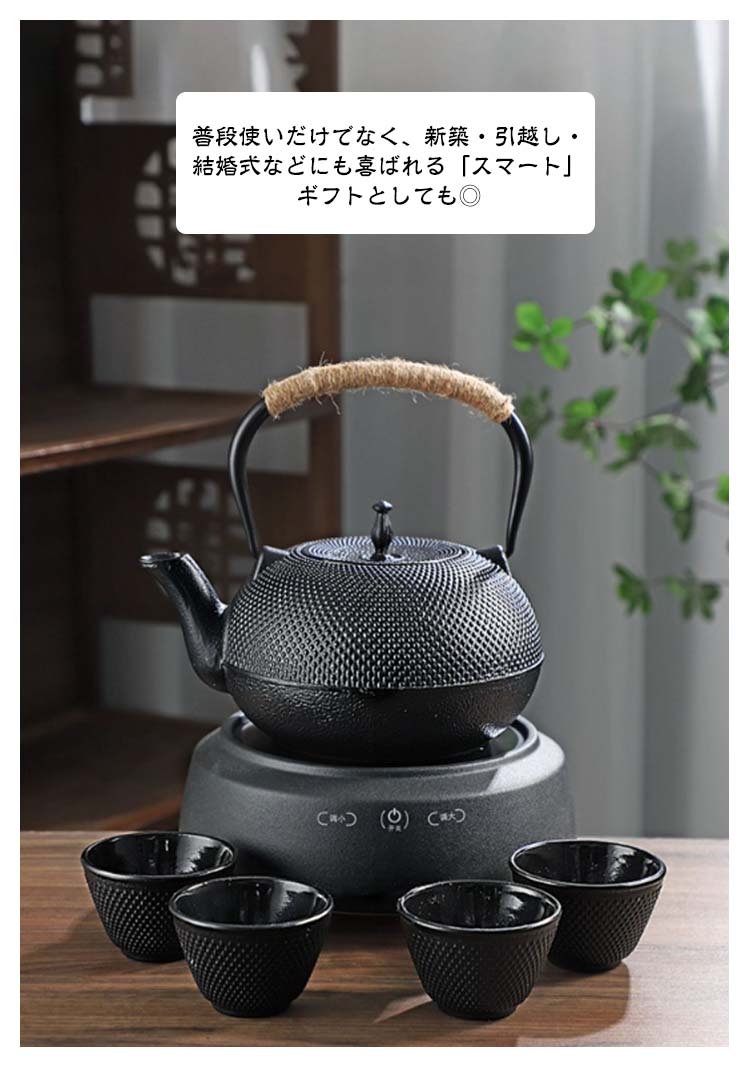 0.6l 0.9l 1.2l茶こし付直火/ih/電子レンジ 対応お茶を好きな人のために、生まれった鉄瓶。鉄瓶を直火にかけると鉄分が溶け出し水が柔らかな味になることにくわえ、鉄瓶の内側に水道水に含まれるカルキが吸着され、お湯をより美味しく楽しむことができます。手に触れる部分には麻の紐を用いることで、使いやすさはもちろん、鉄瓶の古臭いイメージを払拭したモダンなデザインとなりました。また麻の紐ハンドルを採用、やけどを避けてケトルを素手で掴むことができます。底部は熱伝導率を高めるフラット形状で、IH調理器の使用に最適な底面積を確保。電磁調理器(IH)、ガス火、直火、セラミックヒーターに対応。普段使いだけでなく、新築・引越し・結婚式などにも喜ばれる「スマート」ギフトとしても◎