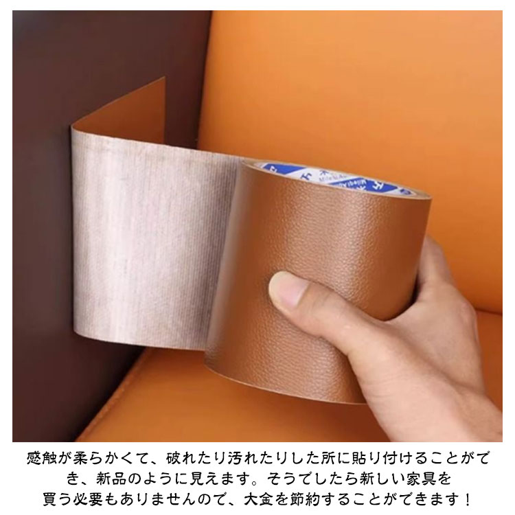 【合皮補修シート】【全8色】【5cm*5M 10cm*5M】便利であるだけでなく、耐久性があり、粘性が強く、防水性があり、健康で環境にも優しいです。革家具や車のシートなど革製品を新しいように見せることができます。感触が柔らかくて、破れたり汚れたりした所に貼り付けることができ、新品のように見えます。そうでしたら新しい家具を買う必要もありませんので、大金を節約することができます!ソファ、椅子、革ベッド、シートバック、車のインテリア、ジャケット、ハンドバッグなどの革製品家具や日常用品の裂傷、傷、色あせ、破れなどを補修できます。ロールテープタイプなので、折りジワを気にせずにお使いいただけます。