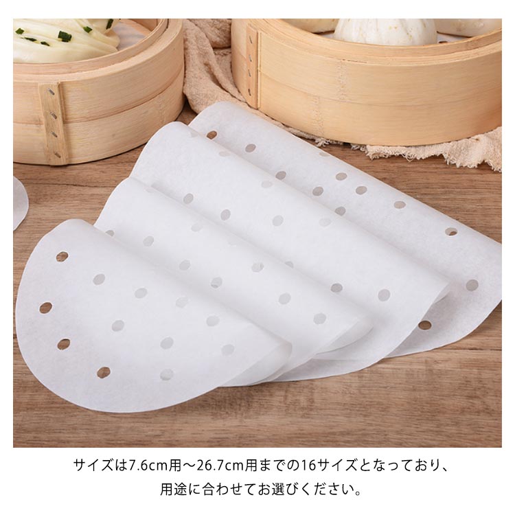 セイロ用 調理用紙 100枚入 直径7.6~26.7cm せいろ用調理シート 穴あき 丸型 クッキングシート 調理紙 中華せいろ セイロ 蒸しシート 蒸篭シート 蒸籠 耐油紙 ペーパー セパレート紙 業務用 肉まん シュウマイ 茶碗蒸し 点心 こびりつき防止 送料無料