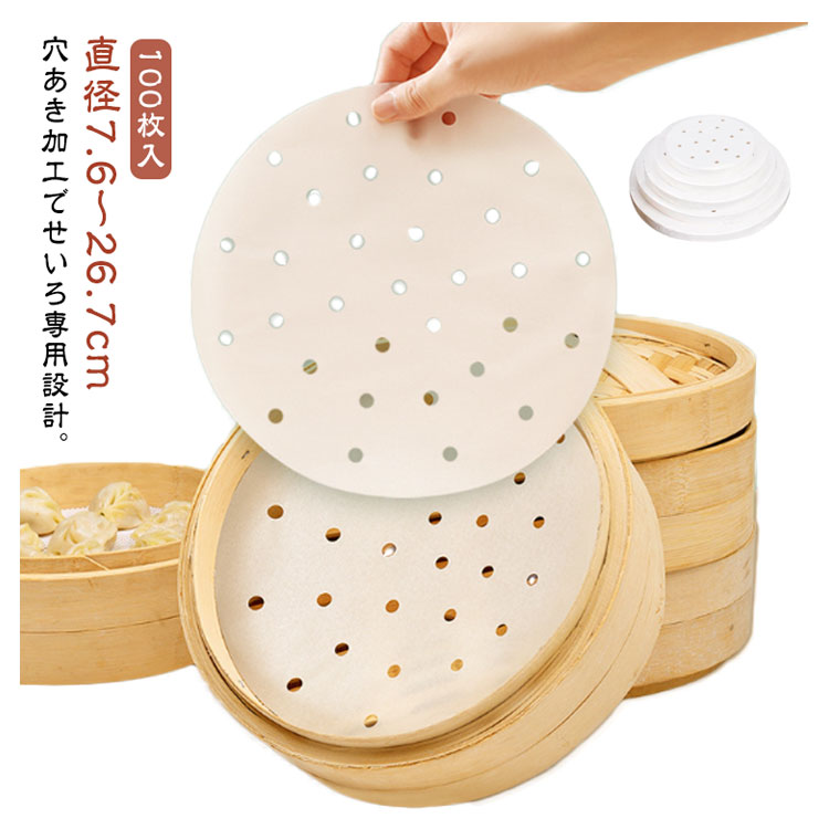 セイロ用 調理用紙 100枚入 直径7.6~26.7cm せいろ用調理シート 穴あき 丸型 クッキングシート 調理紙 中華せいろ セイロ 蒸しシート 蒸篭シート 蒸籠 耐油紙 ペーパー セパレート紙 業務用 肉まん シュウマイ 茶碗蒸し 点心 こびりつき防止 送料無料