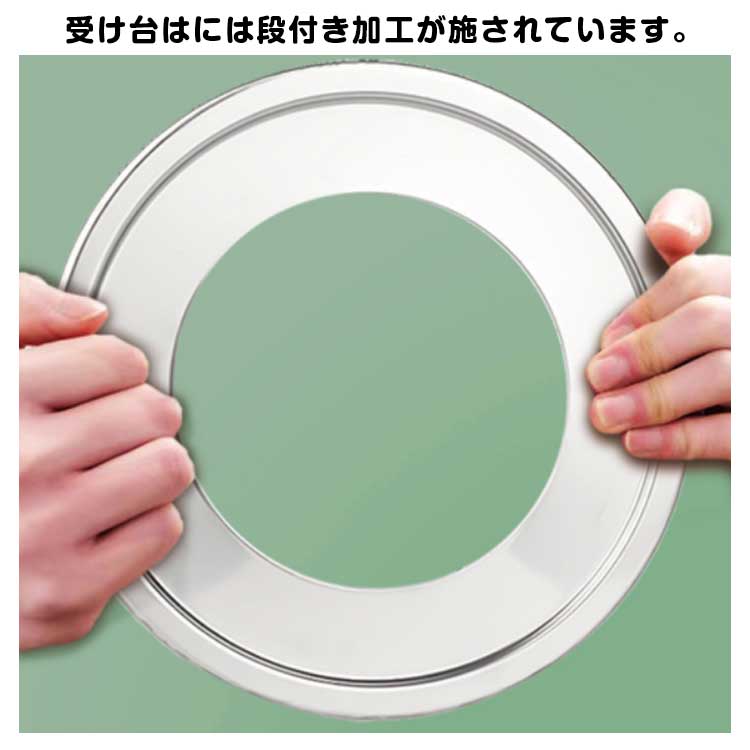 蒸し板があるとお手持ちの鍋に合わせて気軽に蒸し料理が楽しめます。受け台はには段付き加工が施されています。ステンレス製で、耐腐食性があり、サビに強く、丈夫でお手入れも簡単です。蒸気口が広いので蒸しセイロの効率が良く、料理の制作時間を短縮できます。お手持ちのお鍋やフライパンにセットするだけで、本格セイロ料理が楽しめる優れもの。サイズは内径18cm~30cmまでの7サイズとなっております。