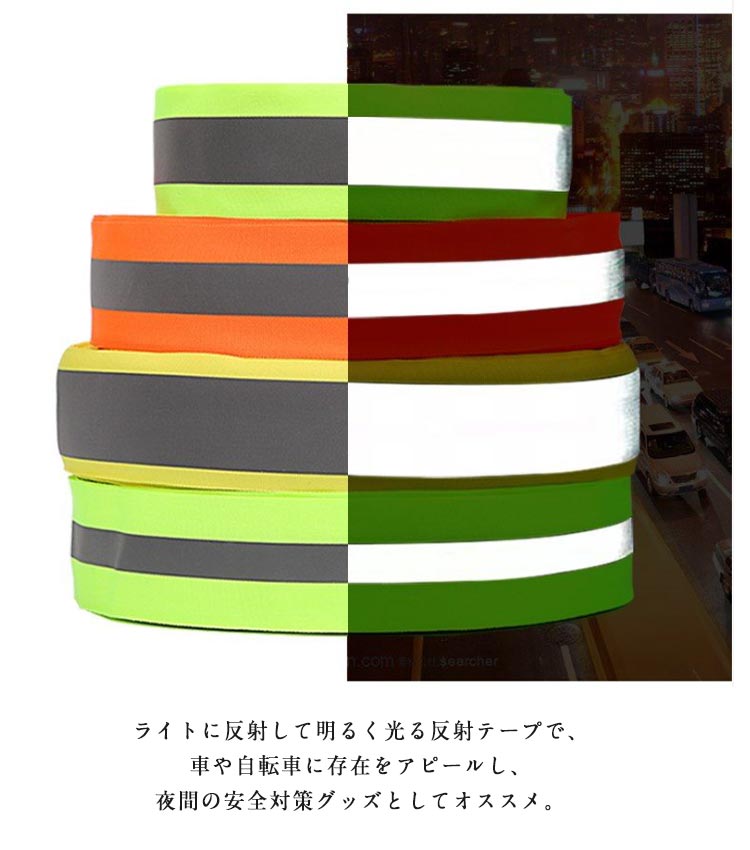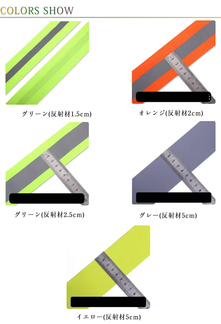 | 色 | グリーン(反射材1.5cm) オレンジ(反射材2cm) グリーン(反射材2.5cm) グレー(反射材5cm) イエロー(反射材5cm) |