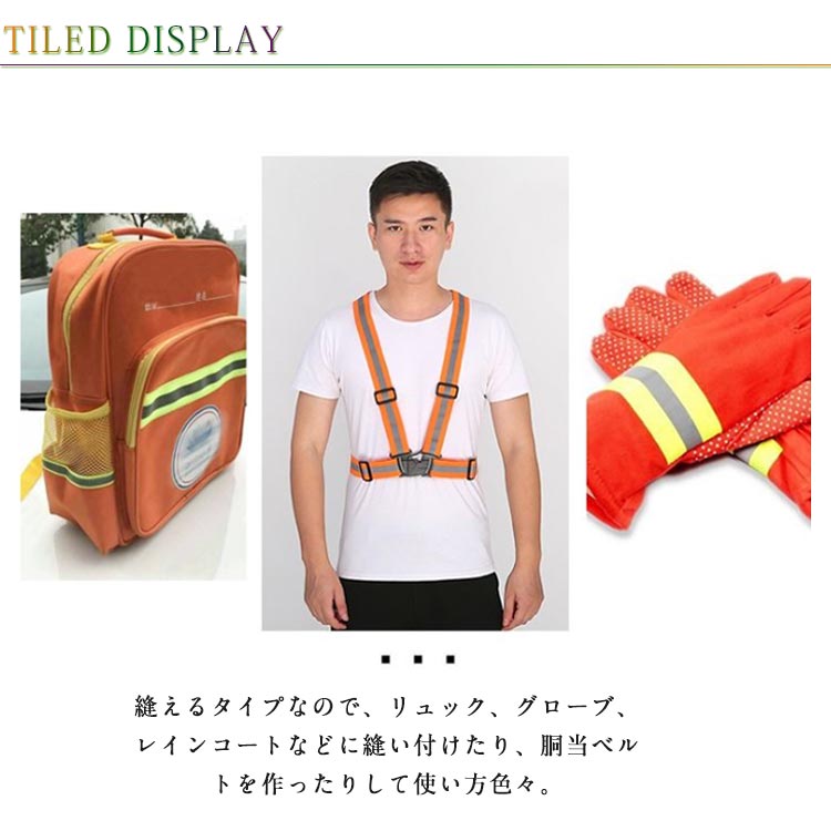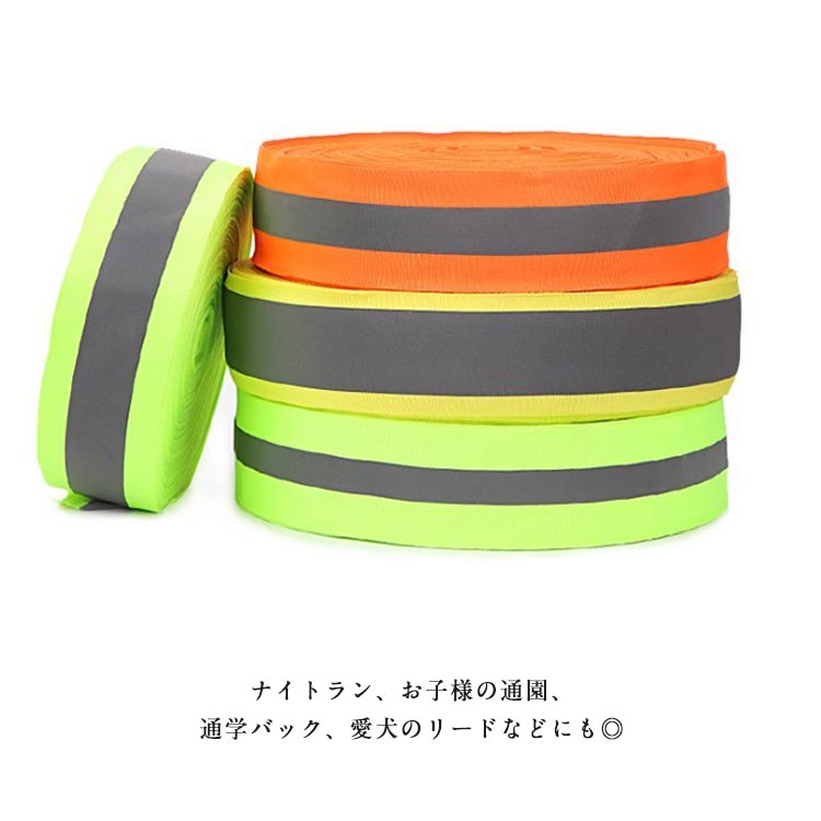 夜間、雨の日、暗い場所で視認性を高める反射テープ。ライトに反射して明るく光る反射テープで、車や自転車に存在をアピールし、夜間の安全対策グッズとしてオススメ。縫えるタイプなので、リュック、グローブ、レインコートなどに縫い付けたり、胴当ベルトを作ったりして使い方色々。ナイトラン、お子様の通園、通学バック、愛犬のリードなどにも◎工事現場、工場、倉庫など様々なところで大活躍。