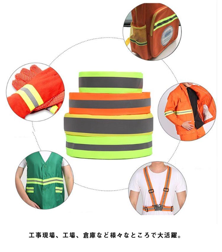| 夜間、雨の日、暗い場所で視認性を高める反射テープ。 ライトに反射して明るく光る反射テープで、車や自転車に存在をアピールし、夜間の安全対策グッズとしてオススメ。 縫えるタイプなので、リュック、グローブ、レインコートなどに縫い付けたり、胴当ベルトを作ったりして使い方色々。 ナイトラン、お子様の通園、通学バック、愛犬のリードなどにも◎ 工事現場、工場、倉庫など様々なところで大活躍。 | |