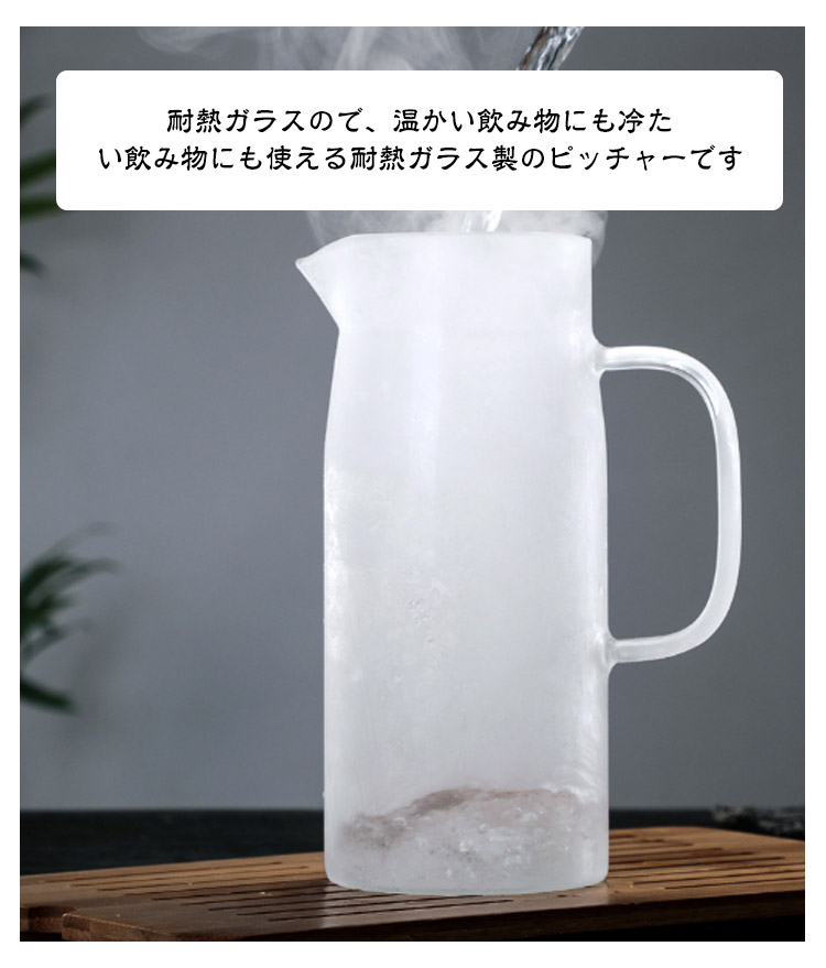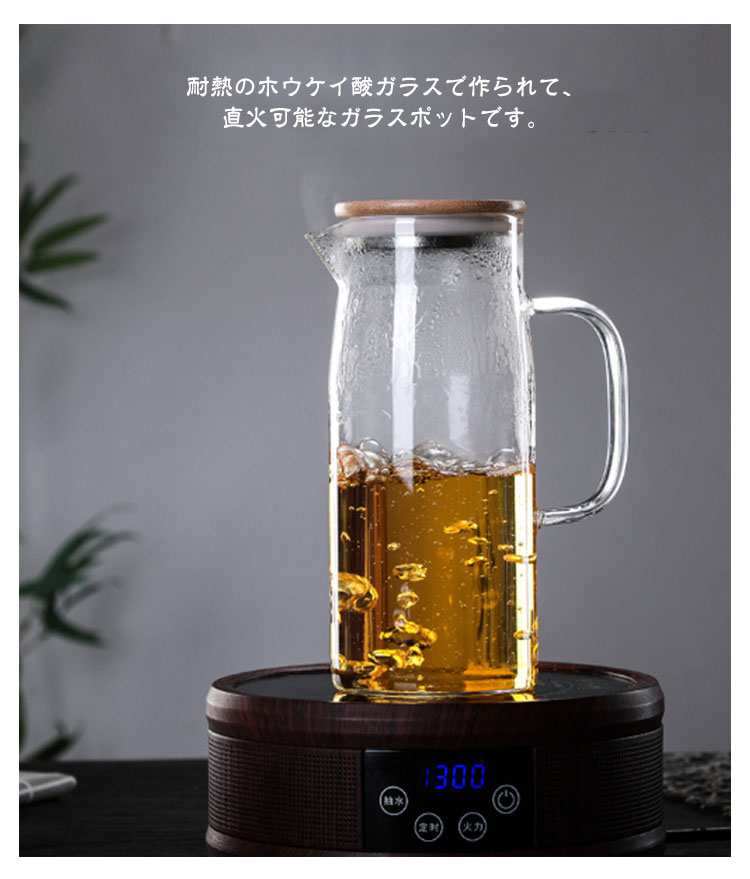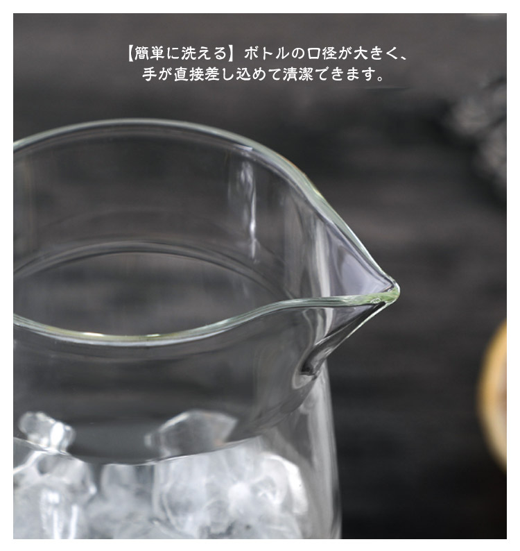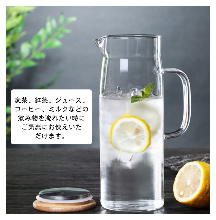 【1000ml 1200ml 1500ml】【耐熱ガラス】【直火可】【多用途】耐熱ガラスので、温かい飲み物にも冷たい飲み物にも使える耐熱ガラス製のピッチャーです耐熱のホウケイ酸ガラスで作られて、直火可能なガラスポットです。【簡単に洗える】ボトルの口径が大きく、手が直接差し込めて清潔できます。麦茶、紅茶、ジュース、コーヒー、ミルクなどの飲み物を淹れたい時にご気楽にお使えいただけます。