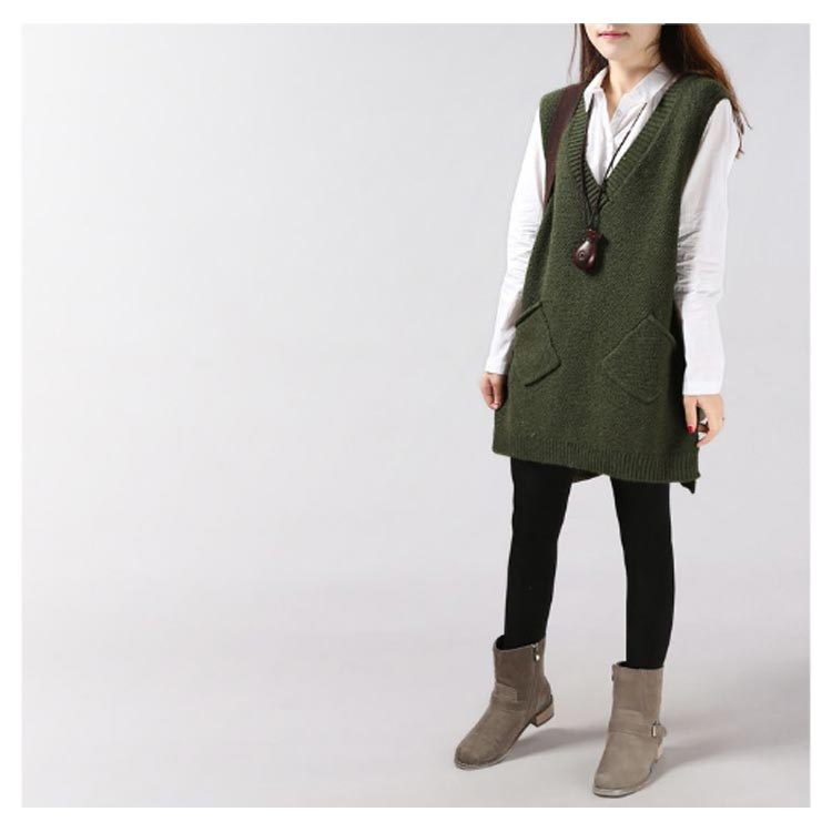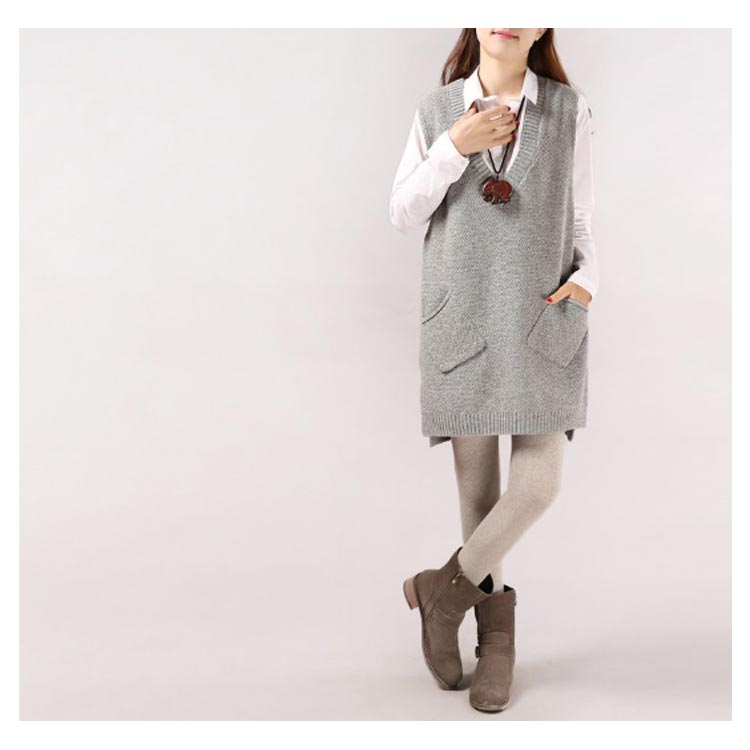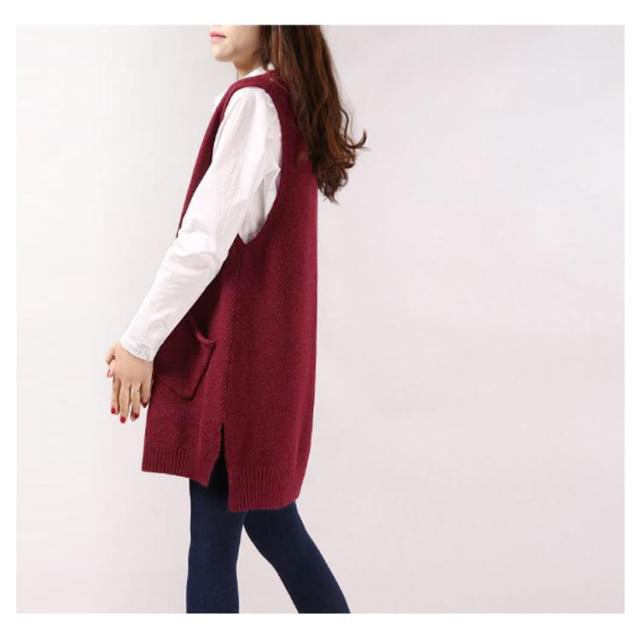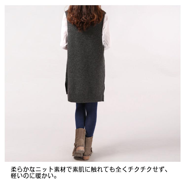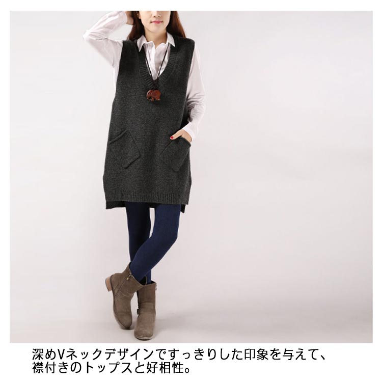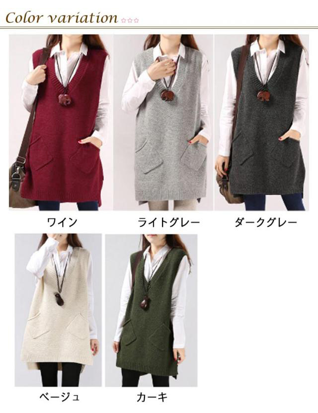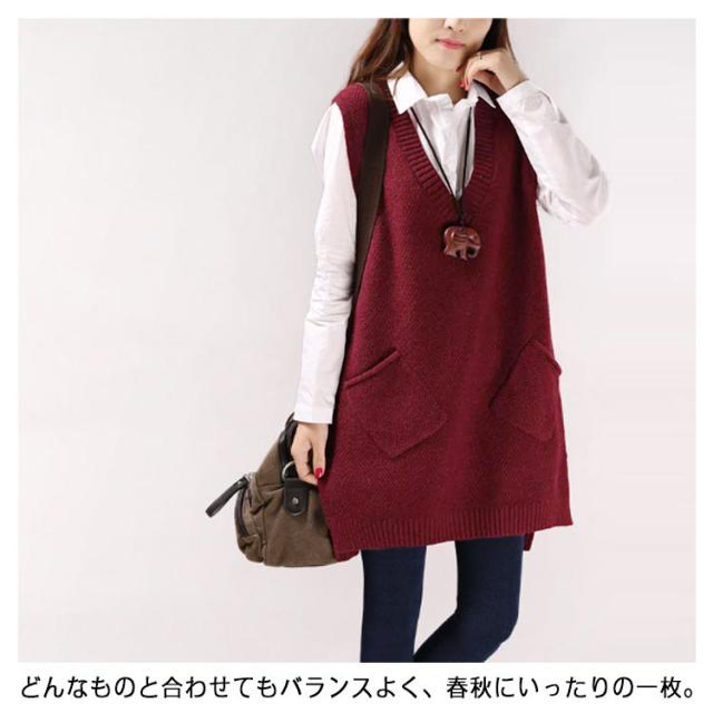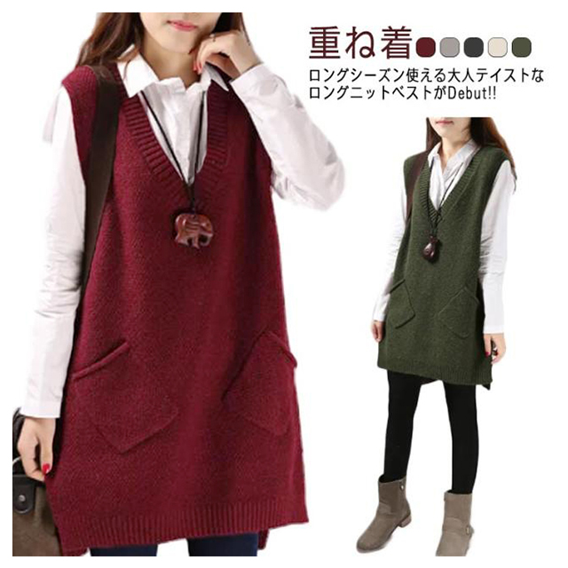 チュニックベスト レイヤード ニット ロングベスト ニットベスト レディース Vネック トップス ベスト 重ね着 スリット入り 秋冬 セーター ノースリーブ ロング丈 体型カバー ポケット付き 春 秋 ゆったり お洒落
