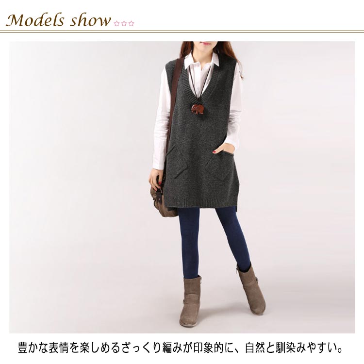 | 全5色×5サイズ!ロングシーズン使える大人テイストなロング二ットベストがDebut!! 豊かな表情を楽しめるざっくり編みが印象的に、自然と馴染みやすい。 深めVネックデザインですっきりした印象を与えて、襟付きのトップスと好相性。 柔らかなニット素材で素肌に触れても全くチクチクせず、軽いのに暖かい。 どんなものと合わせてもバランスよく、春秋にいったりの一枚。 | |