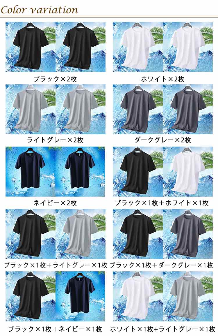 | 接触冷感?ストレッチ!ドライ半袖Tシャツ。【2枚セット 吸汗速乾性に優れたドライメッシュ素材が汗ばむ季節を快適に。 ラウンドネックのtシャツで、汗をかいてもすぐに乾く薄手の軽い着心地、吸汗速乾で蒸れずにいつでもサラサラ爽やかに過ごせます。クールでさわやか、お洒落で可愛い、清潔感のあるすずしいはんそでカットソーです。 ランニングやウォーキングなどのスポーツウェアとしてだけでなく、タウンウェアや部屋着?ルームウェアでも活躍間違いなしの1着です。 カジュアルな普段着はもちろん、肌着、下着、アンダーウェア、ナイトウェア、パジャマなど全般のデイリーウェアとして仕事やビジネスのオフィスカジュアルに取り言えれるのもラフでカッコイイ tシャツです。 | |