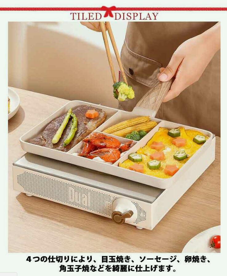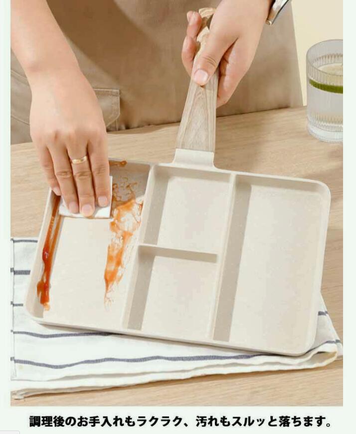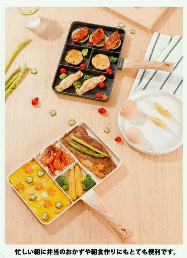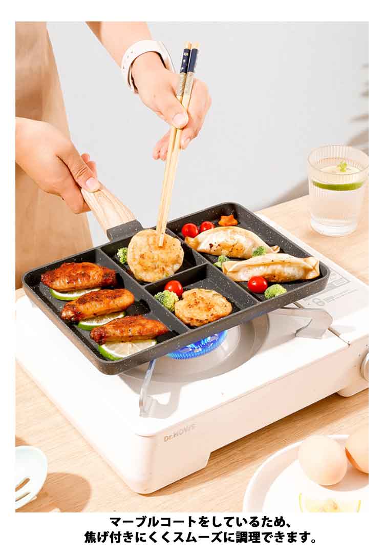 | 【四つ料理同時に作れる】【IH?ガス火対応】 4つの仕切りにより、目玉焼き、ソーセージ、卵焼き、角玉子焼などを綺麗に仕上げます。忙しい朝に弁当のおかずや朝食作りにもとても便利です。 均一に熱伝導鍋体は均一に熱を受けてかまどを選ばない、熱伝導が速くて均一で、各種のガスレンジ及び電磁炉に適します。 持ち手が掛けられる設計で、場所を取らず、省スペースで便利。 マーブルコートをしているため、焦げ付きにくくスムーズに調理できます。調理後のお手入れもラクラク、汚れもスルッと落ちます。 機能性に拘るだけではなく、見た目も重視されています。オシャレなデザインにより、キッチンを明るく、日々のお調理がより一層楽しくなります | |